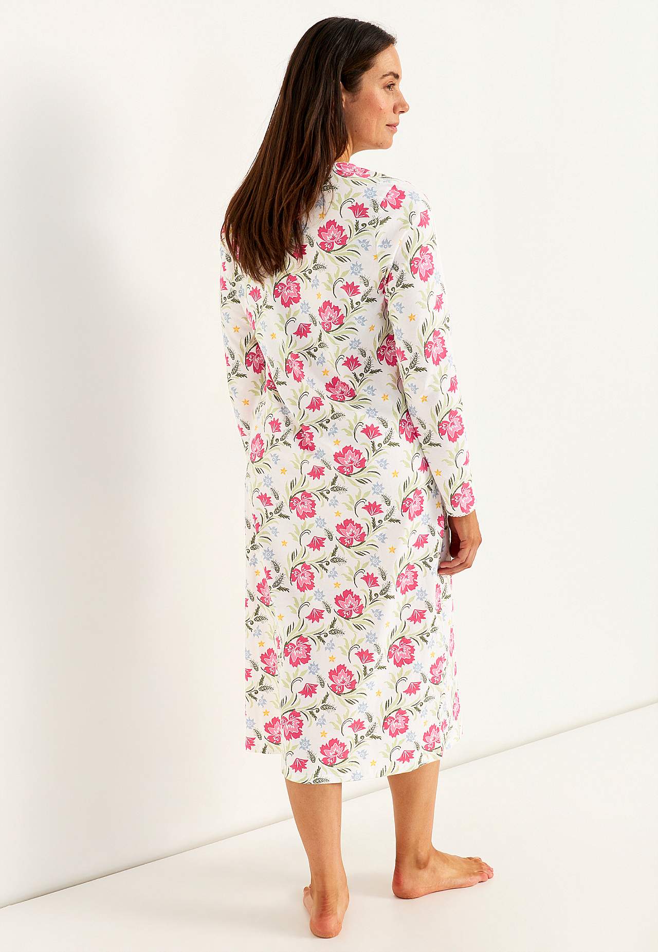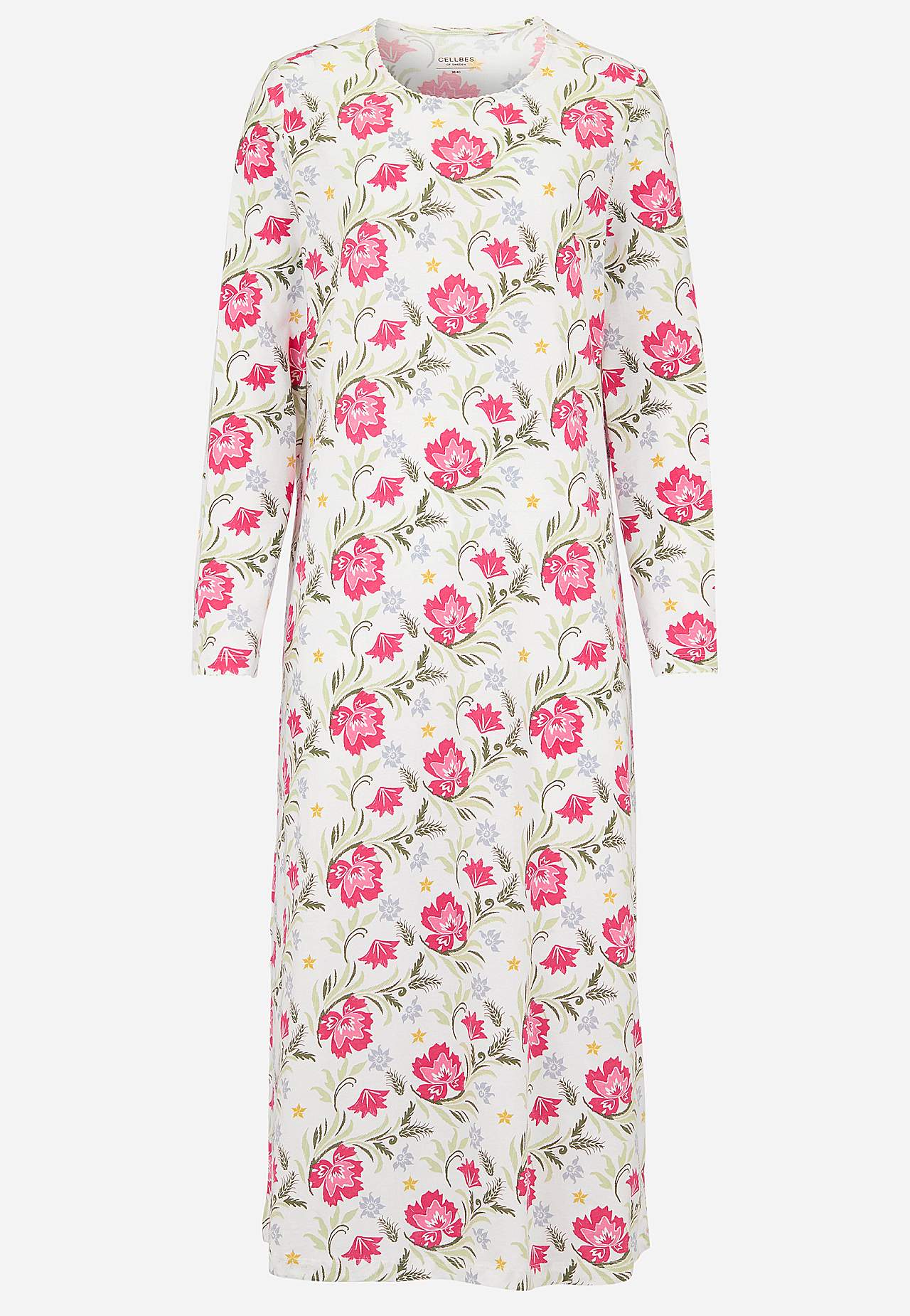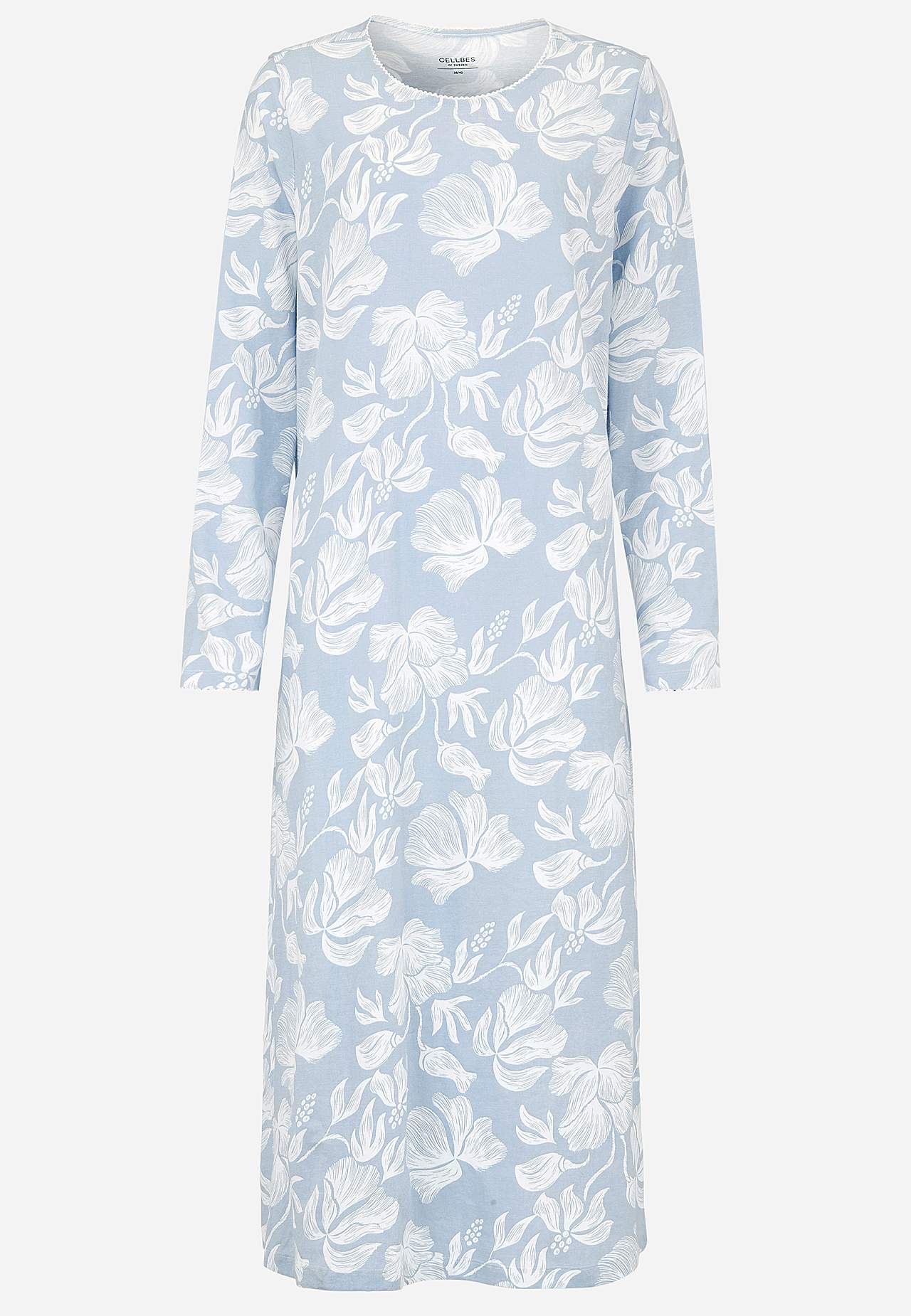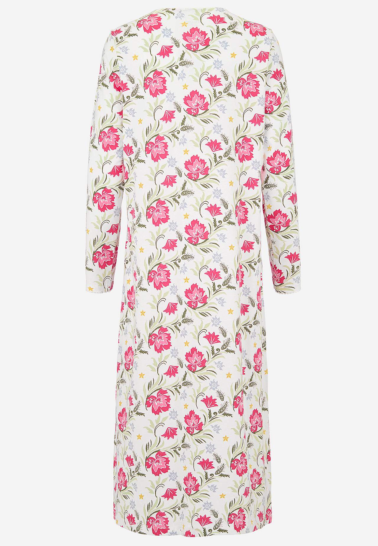 Zaokrąglona szyja z miłym koronkową krawędzią. Długie rękawy z koronkowym brzegiem na mankietach. Prosty brzeg. Długość od ramienia ok. 123 cm we wszystkich rozmiarach.