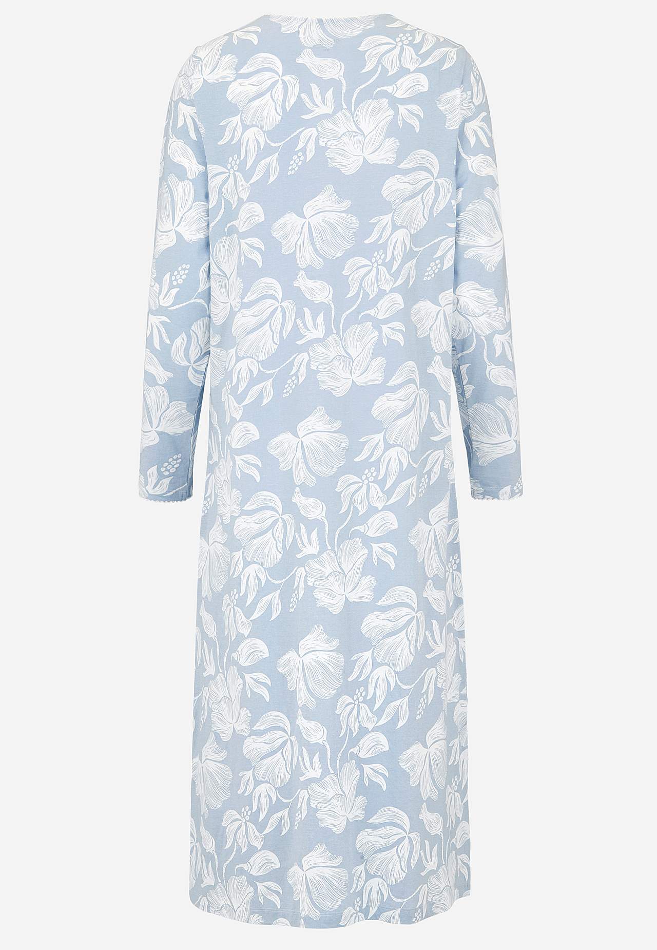 Zaokrąglona szyja z miłym koronkową krawędzią. Długie rękawy z koronkowym brzegiem na mankietach. Prosty brzeg. Długość od ramienia ok. 123 cm we wszystkich rozmiarach.