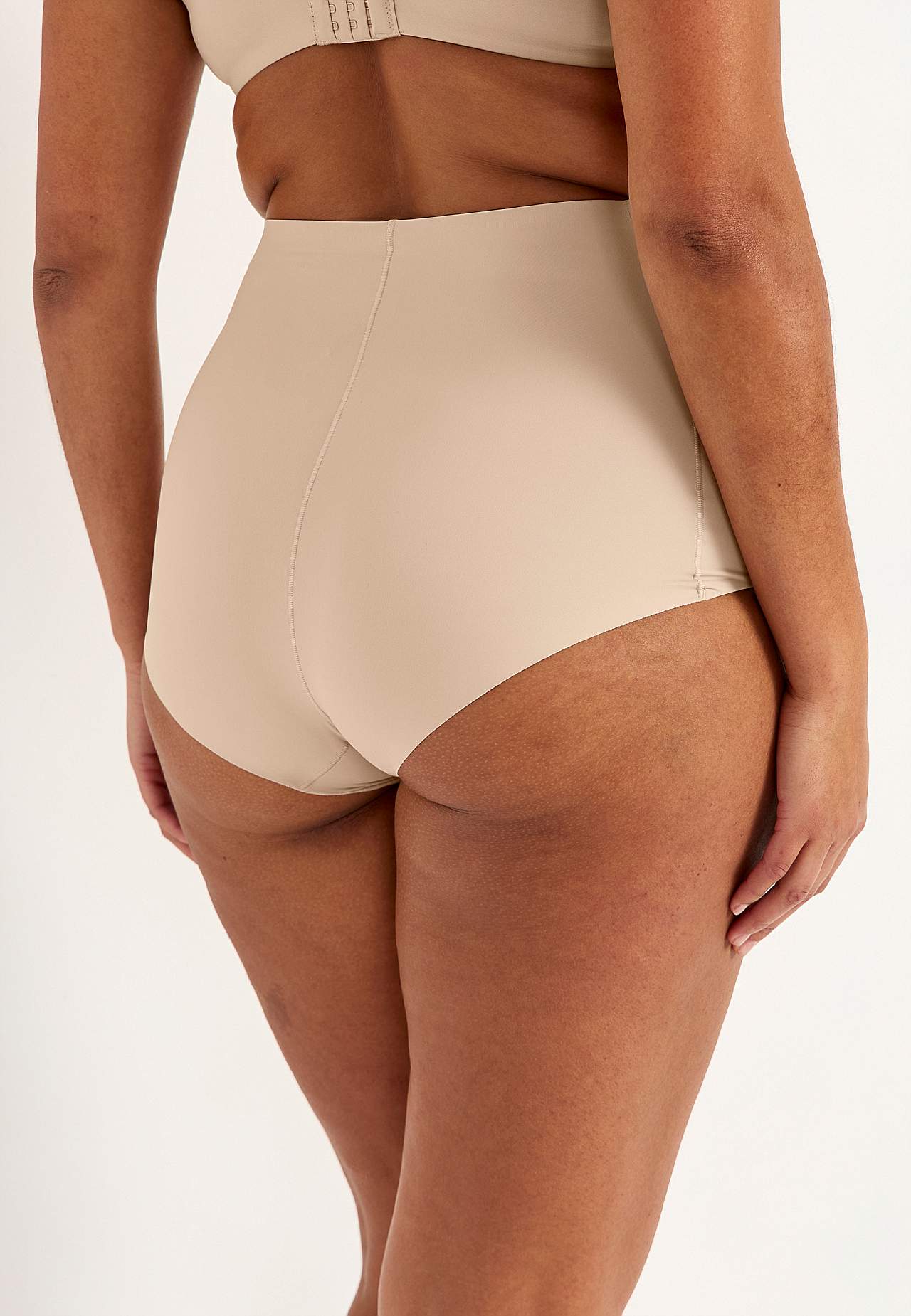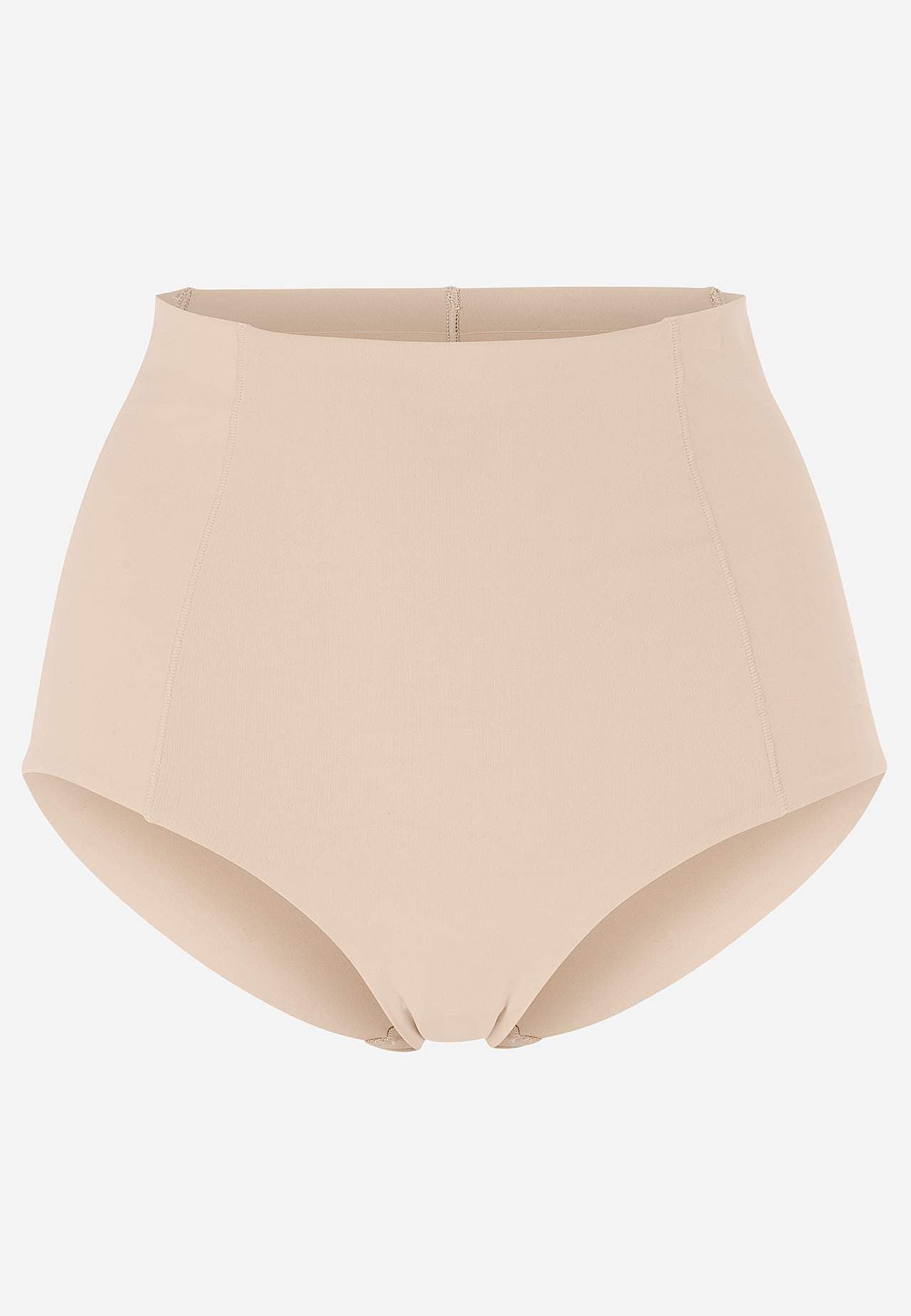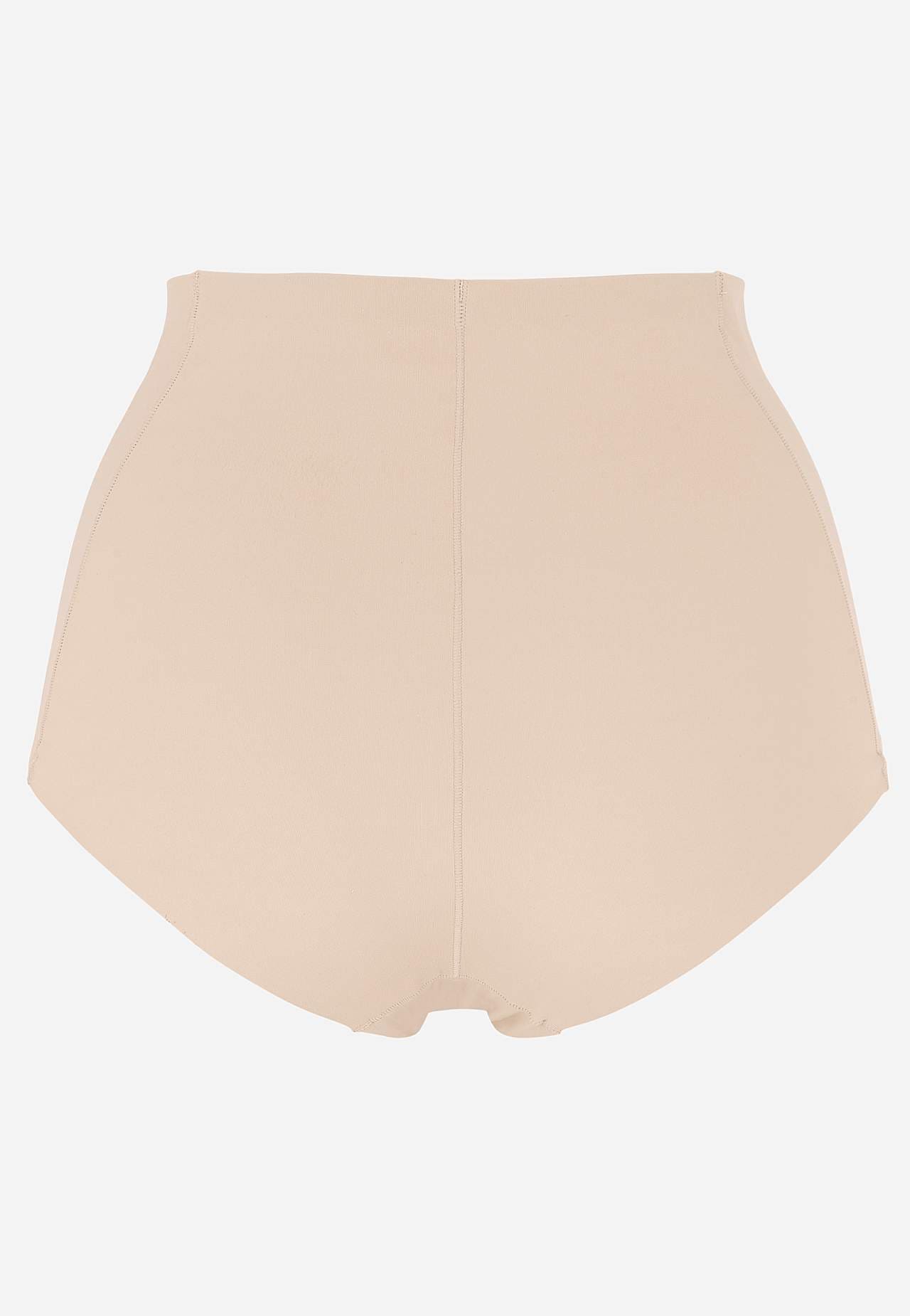 Medium efekt kształtujący z przodu i na bokach. Dopasowane majtki damskie z miękkiej i elastycznej mikrofibry. Twarzowy fason z wysokim stanem. Krawędzie cięte laserowo z tyłu. Podszyty bawełną klin.
