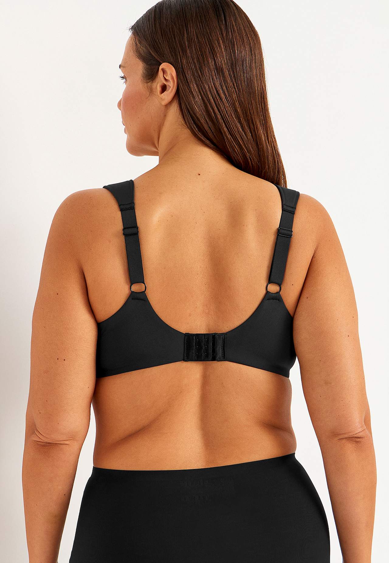 Miękki i wygodny biustonosz na fiszbinach z uformowanymi i nieuszytwnionymi miseczkami. Wsparcie siatki stabilizującej na zewnętrznej miseczce. Szerokie boki zapewniające stabilność i wygodę. 2-rzędowe zapięcie na guziki z tyłu, 3-rzędowe w większych rozmiarach.