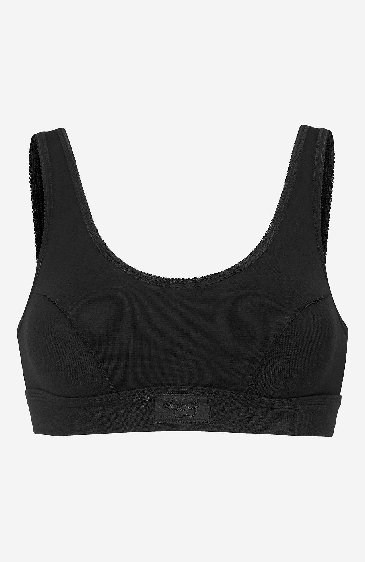 Miękki top z mieszanki bawełny ze stretchem. Gładkie i formowane szycia nad biustem. Szeroki i elastyczny brzeg z detalem z logo w tym samym odcieniu. Głęboki dekolt z tyłu.