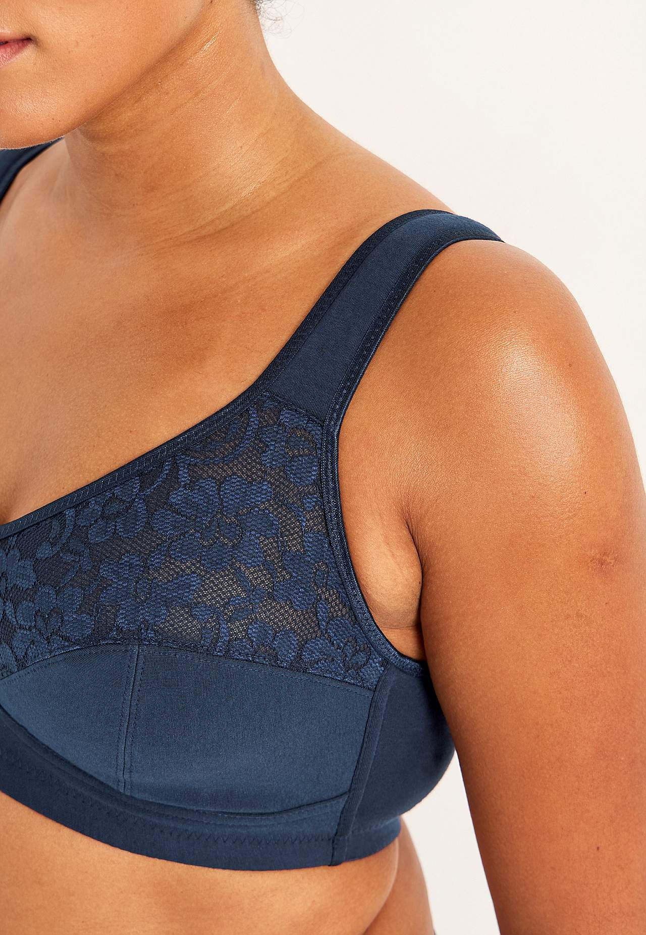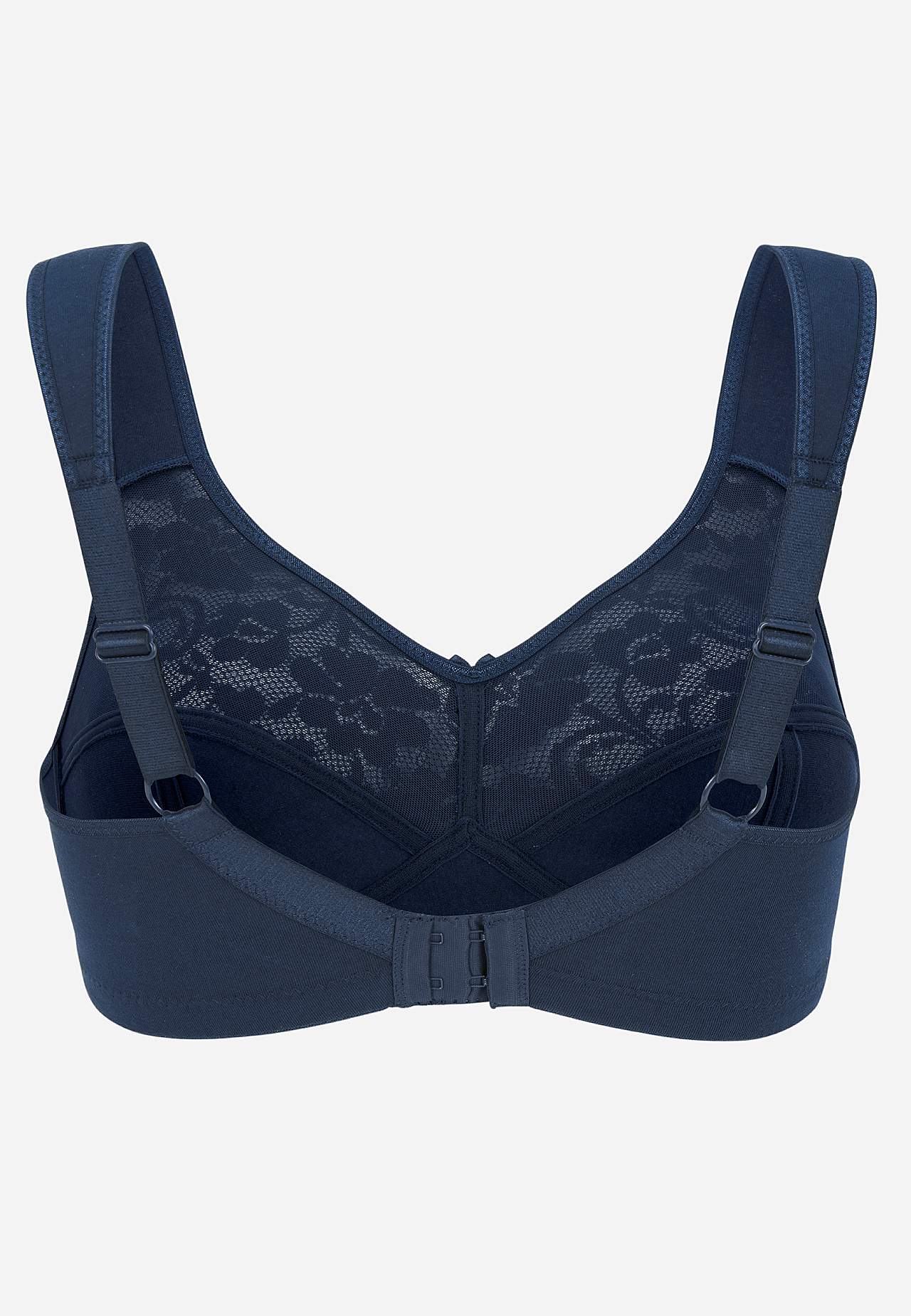 Biustonosz bez fiszbin z uformowanymi i nieuszytwnionymi miseczkami. Górna miseczka z elastycznej koronki. Regulowane ramiączka. 2-rzędowe zapięcie na guziki z tyłu, 3-rzędowe w większych rozmiarach. Sprzedawane również w 1-pakach: 620005.