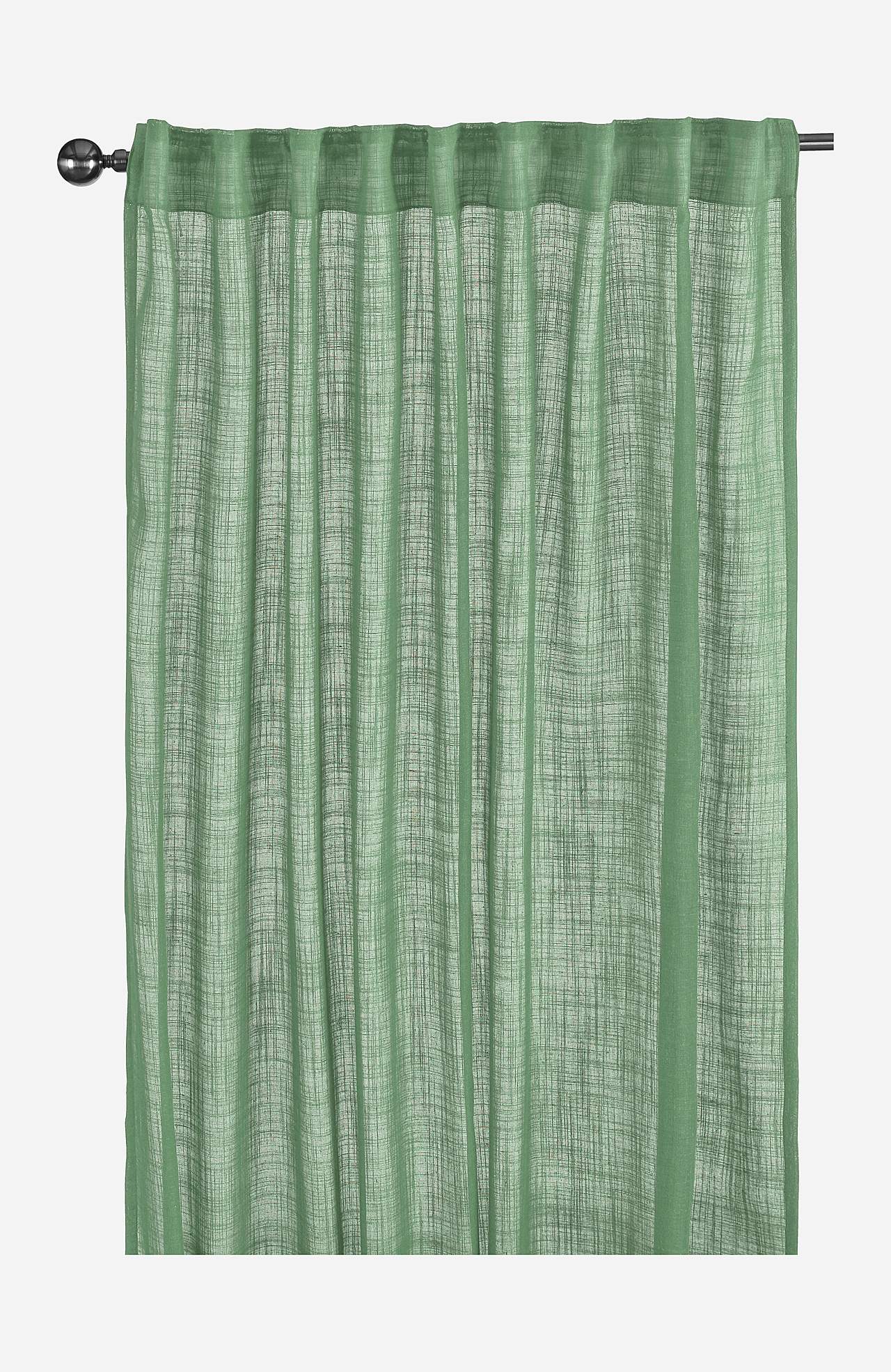 Przewiewne zasłony z miłym drapowaniem. Dobra transmisja światła. Materiał z lnianym wykończeniem. Wplecione nici szczelinowe nadają ładną strukturę. Dostępne w trzech długościach. Krawędź na spodzie.