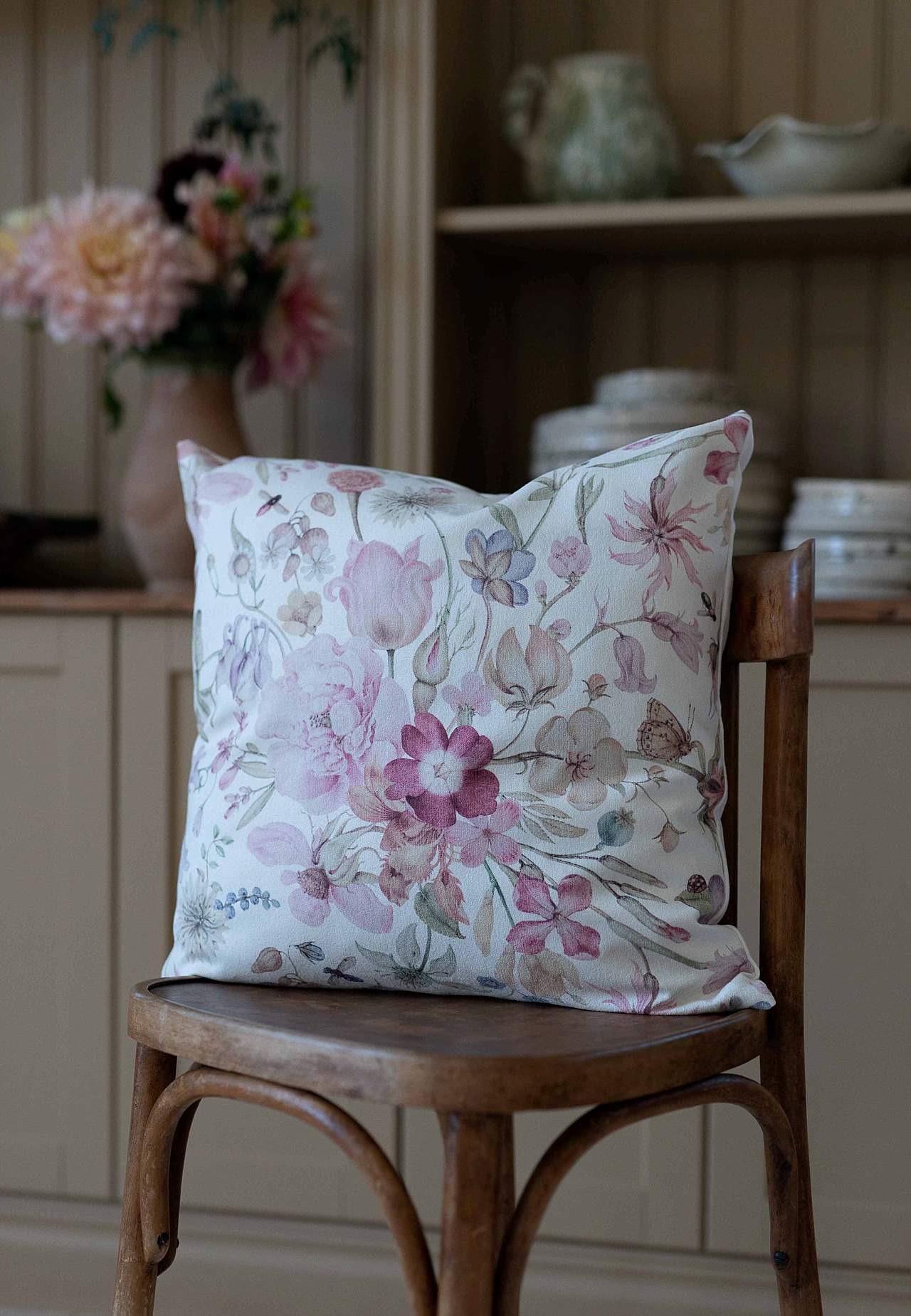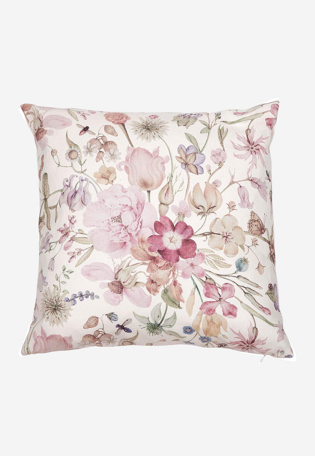 Poszewka na poduszkę z kwiatami i motylami. Aksamitny materiał z matową powierzchnią. Pupa jednolita kolorystycznie. Boczny zamek błyskawiczny. Rozmiar: 48x48 cm.