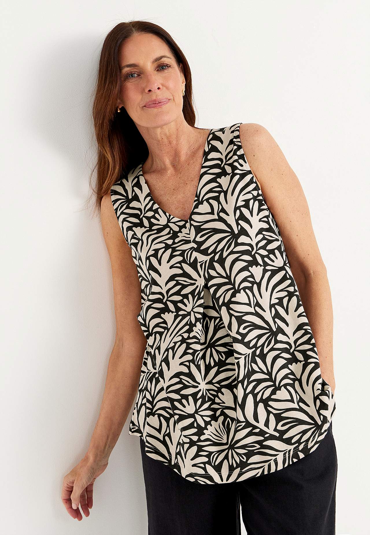 Top z dżerseju bez rękawów z dekoltem w kształcie litery v