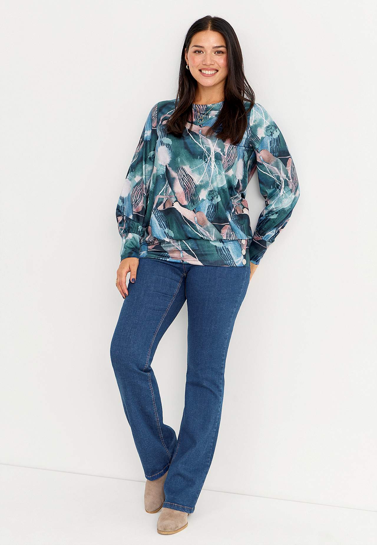 Wzorzysty top z dżerseju z ozdobnymi guzikami