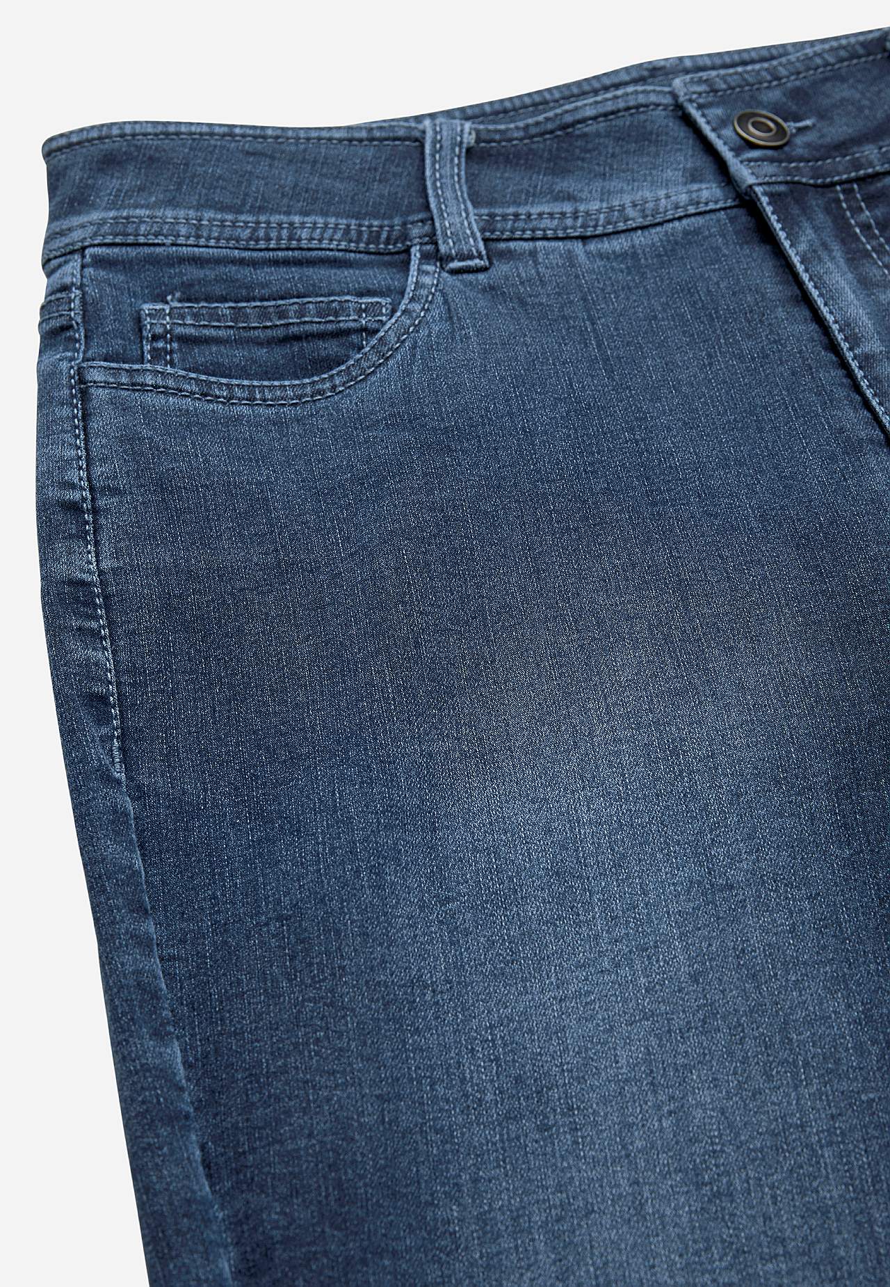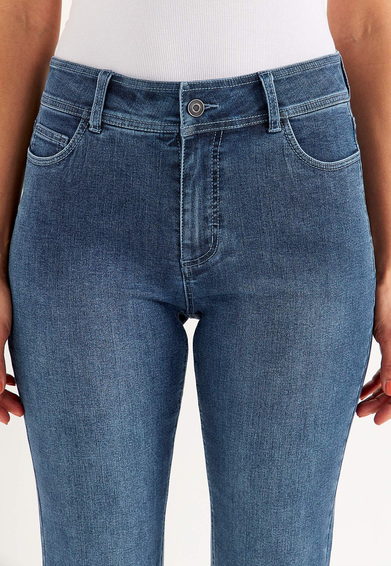 Jeansy z 5 kieszeniami z wygodnego dżinsu ze stretchem. Dostępne w dwóch długościach. Opinający fason. Normalnej wysokości talia. Zamek błyskawiczny. Wąska nogawka z lekko rozciągniętym końcem nogawki przy kostce. Ten produkt wypada duży, zalecamy wybór mniejszego rozmiaru niż zwykle. Krótkie: ok. 61 cm. Normalne: ok. 65 cm... Czytaj więcej