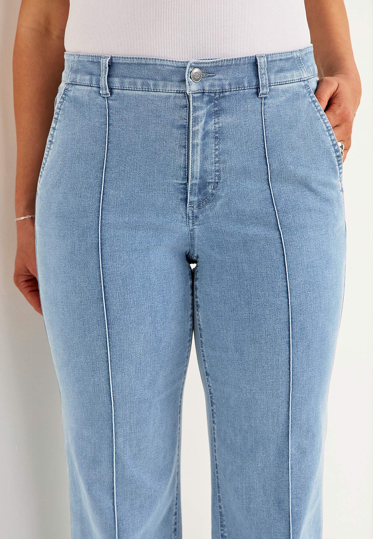 Szerokie dżinsy z kantami w oczka Mia