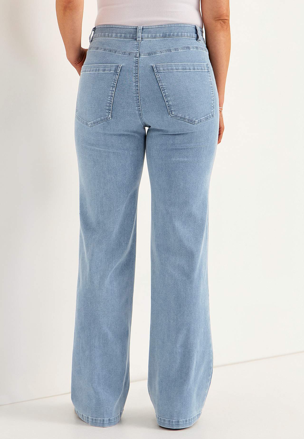 Dżinsy z elastycznego dżinsu. Kanty w oczka z przodu. Regularna talia. Prosty design. Szerokie nogawki. Pas ze szlufkami. Zamek z guzikiem. Kieszenie ukośne z przodu. Dwie tylne kieszenie. Dostępne w dwóch długościach. Dwie długości nogawek wewnętrznych: Regularna, ok. 80 cm. Długa, ok. 85 cm. Głębokość z przodu różni się w... Czytaj więcej