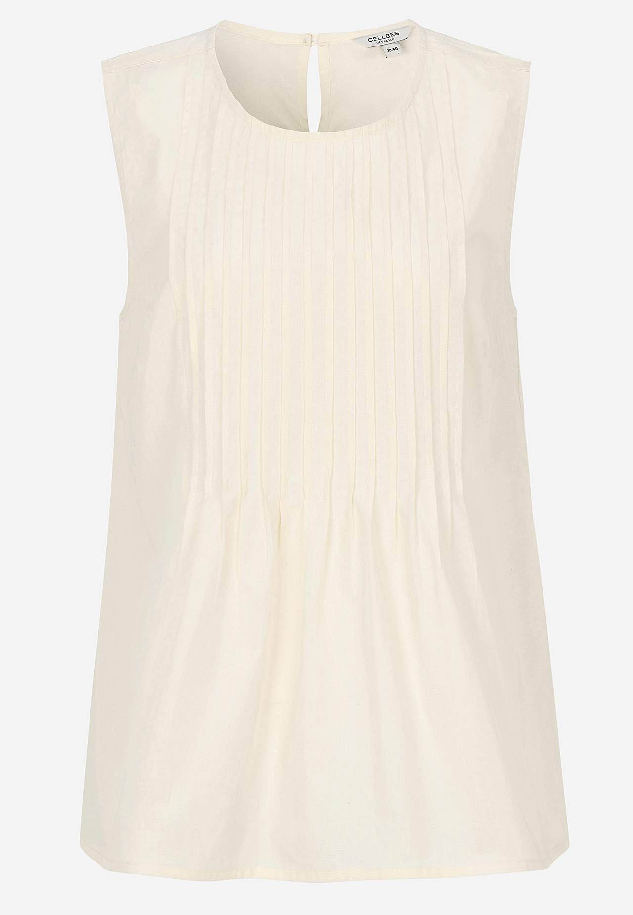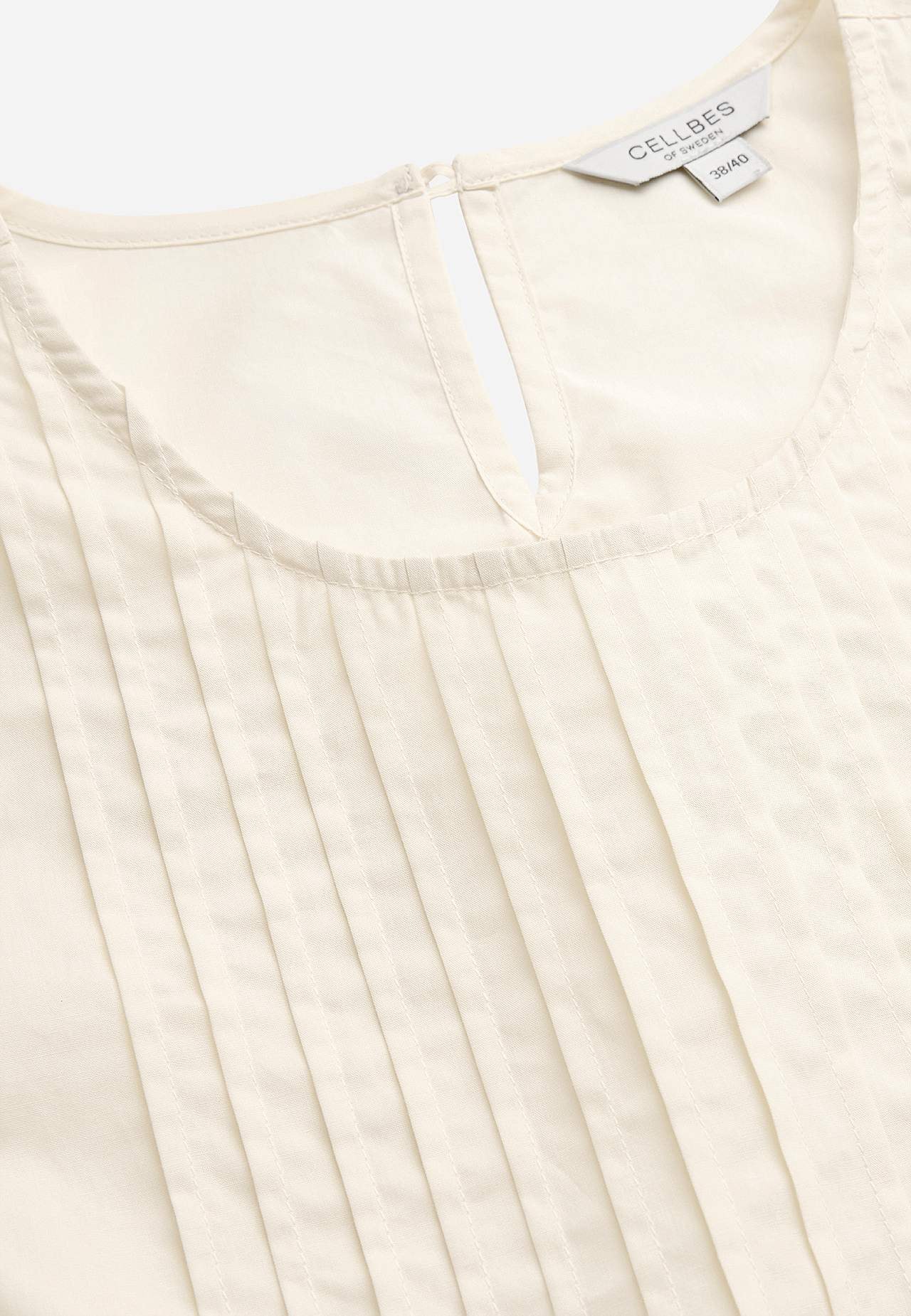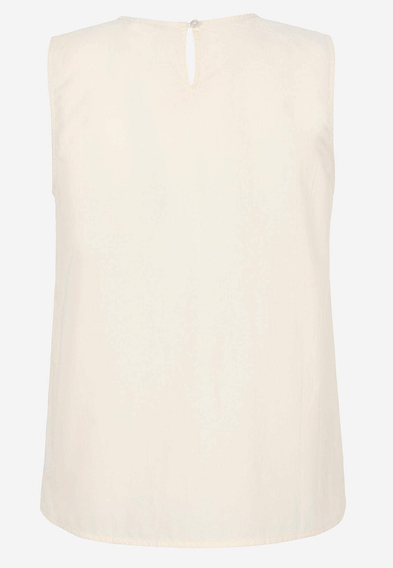 Bluzka z ozdobnym zaszyciem z przodu. Miękka i chłodząca popelina z gładką powierzchnią i lekki i stabilny dotyk. Swobodny i rozszerzany na dole fason. Zaokrąglona szyja z rozcięciem z tyłu szyi z guzikiem. Zaszewka piersiowa. Zaokrąglony brzeg. Długość z tyłu zależna od rozmiaru, ok. 62-77 cm.