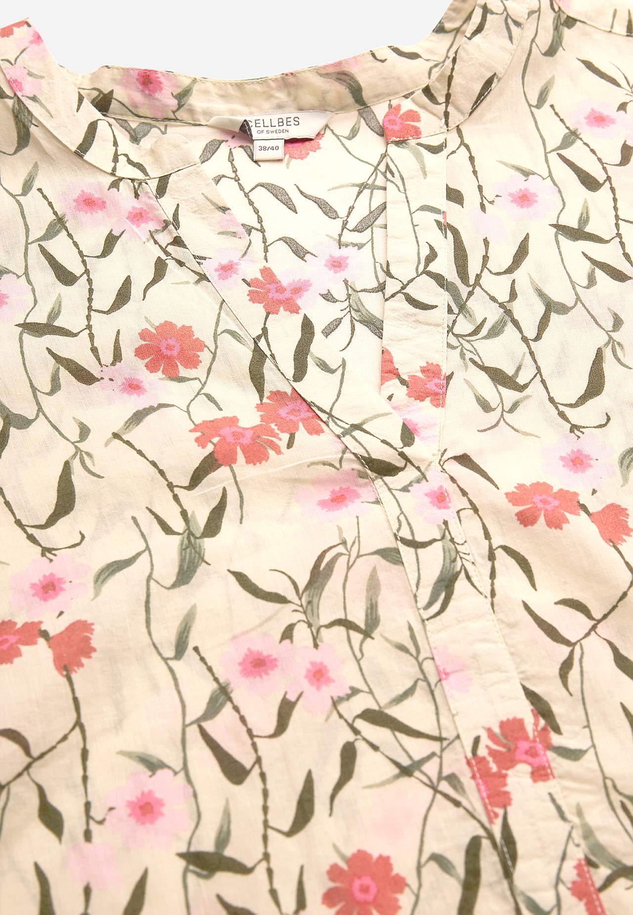 Tunika z przyjemnego i przewiewnego woal bawełniaien. Nieco cieńszy i miękki materiał idealny na ciepłe dni. Luźny fason. Szyja z wycięciem pod szyją w serek i rozcięciem zapinanym na guziki. Zaokrąglony brzeg. Długość od ramion w zależności od rozmiaru ok. 70-81 cm.