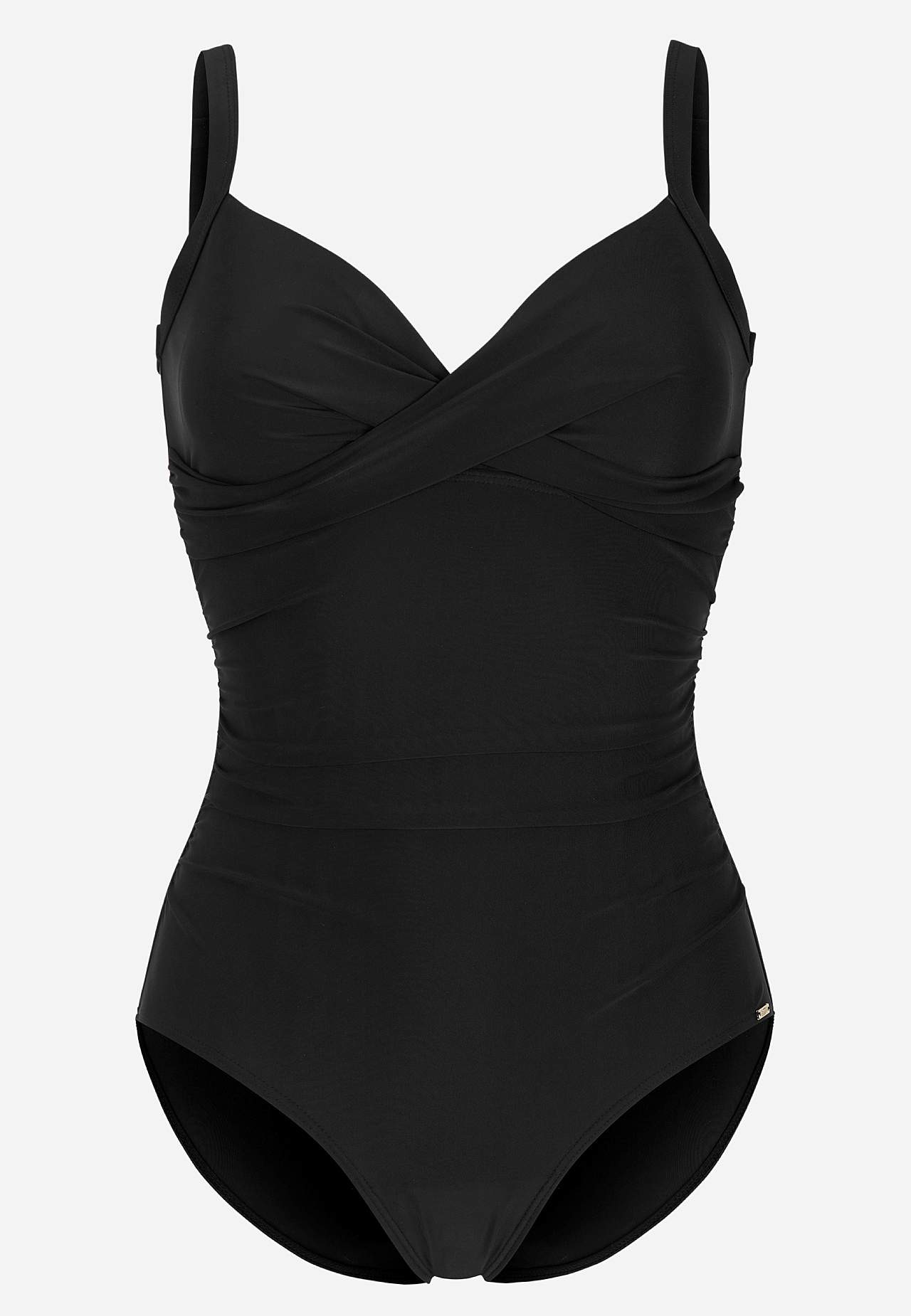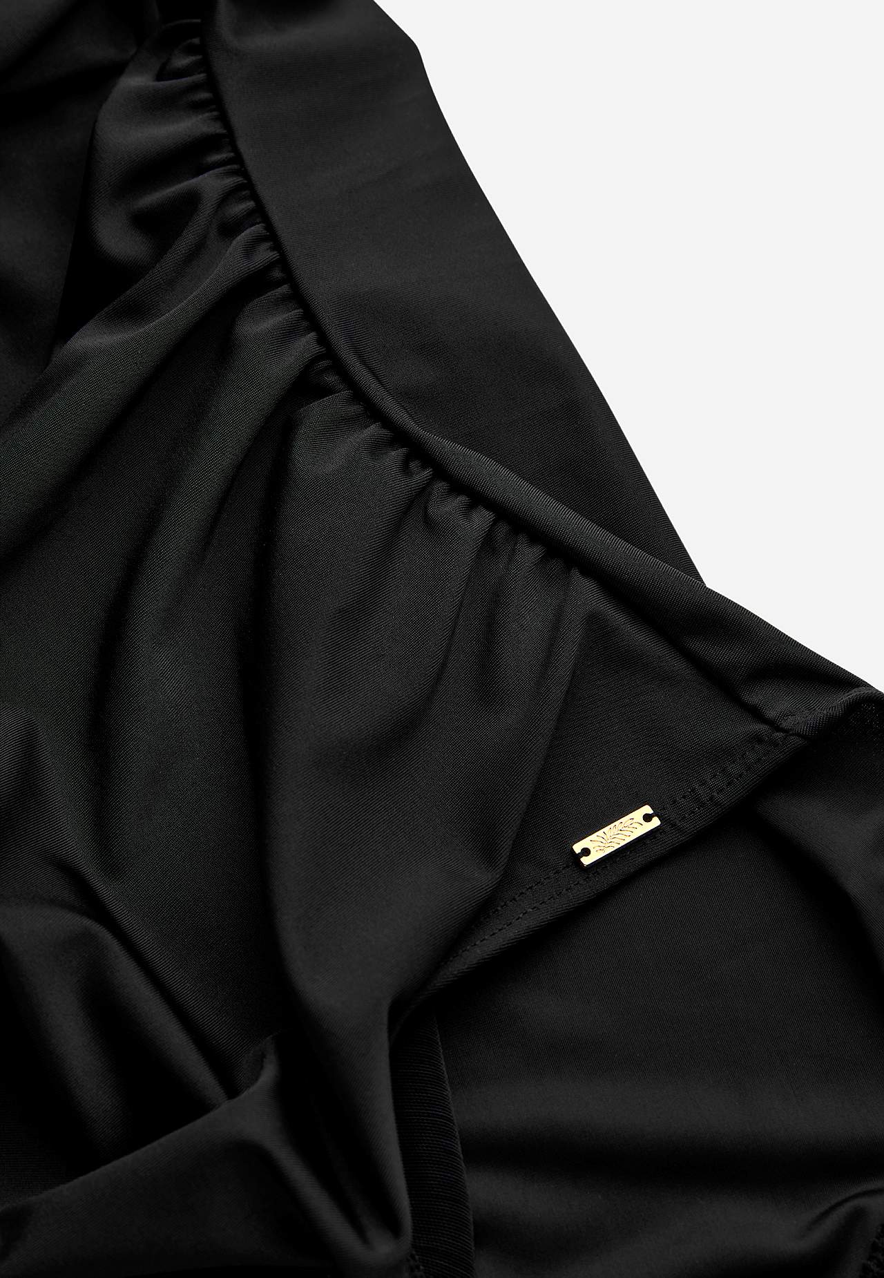 Lekki efekt modelujący. Skrzyżowane drapowanie nad biustem. Podszyty przód. Zaokrąglony dekolt w kształcie litery U z tyłu. Regulowane paski na ramieniu.