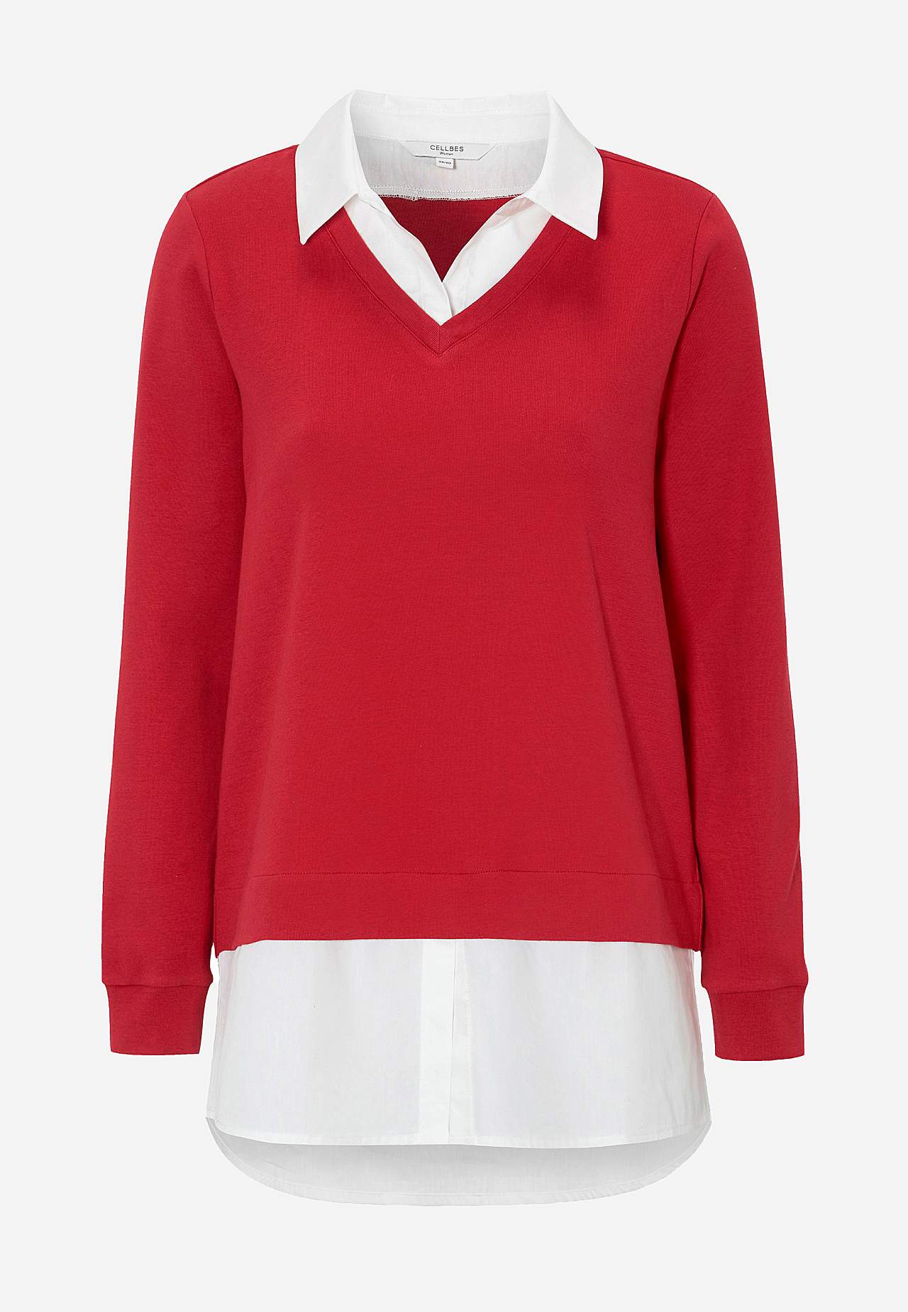 Top z dżerseju z długim rękawem z kołnierzykiem koszuli i koszulową częścią na obszyciu. Długość od ramion z tyłu w zależności od rozmiaru ok. 81-88 cm.