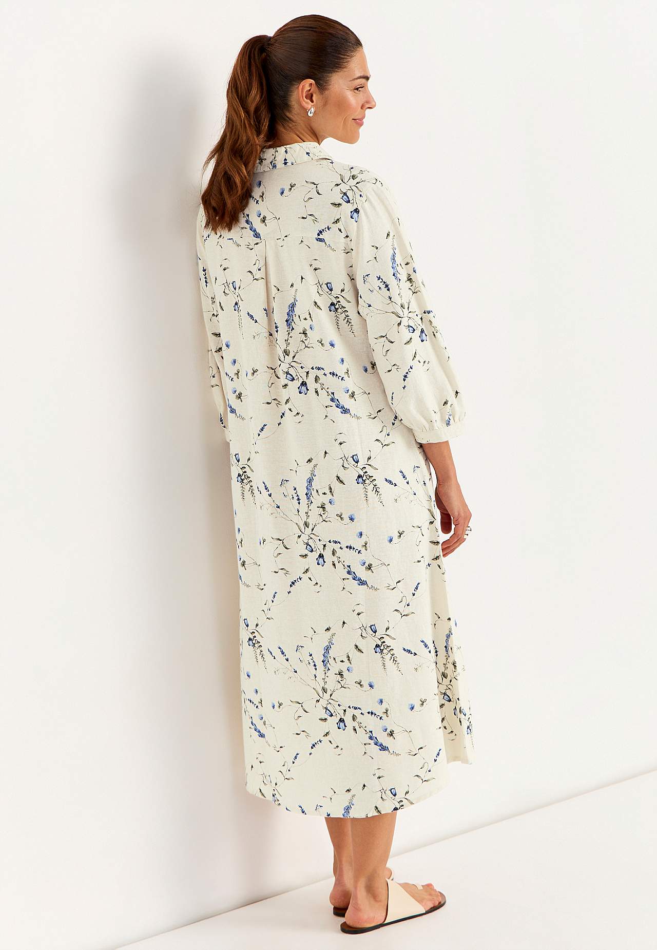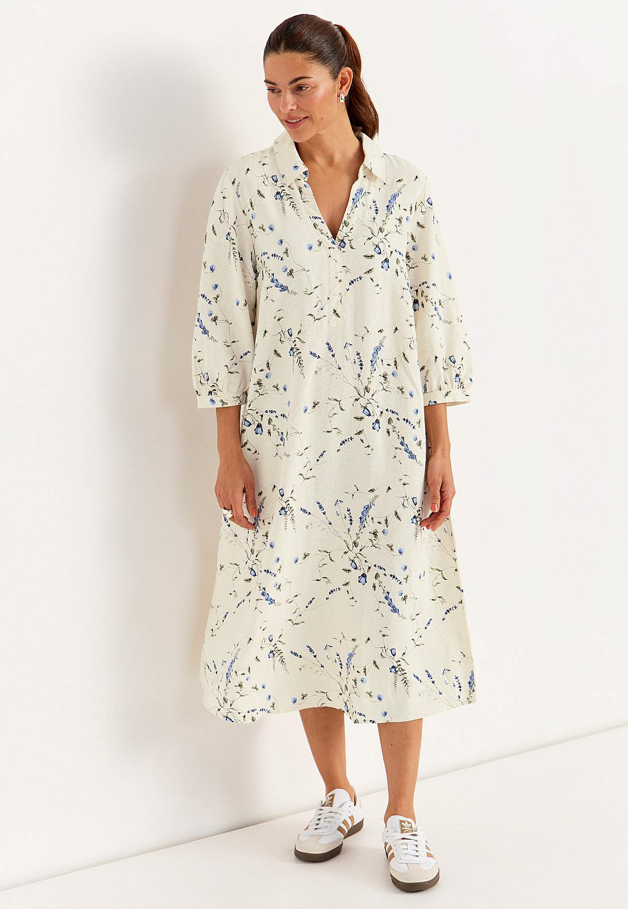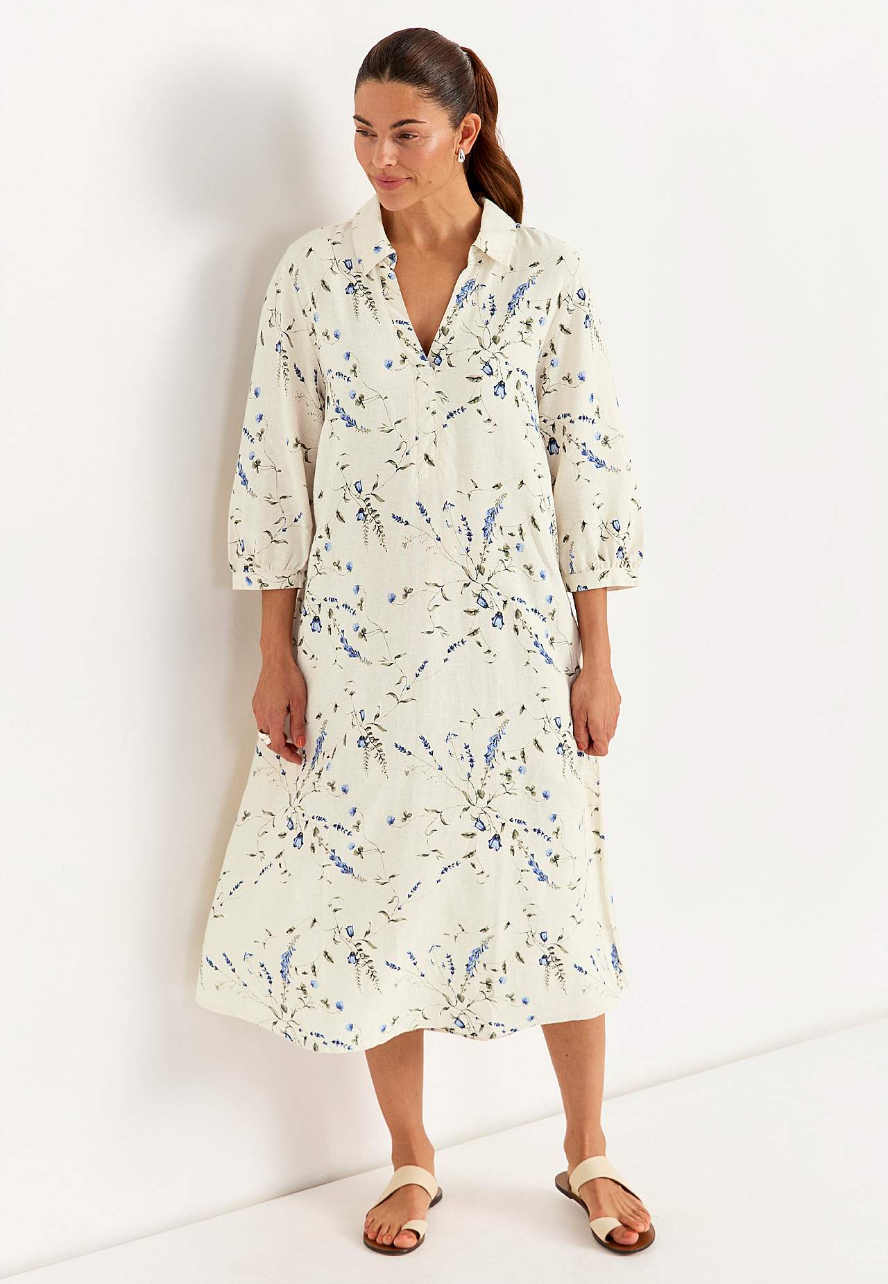 Kwiecista lniana sukienka