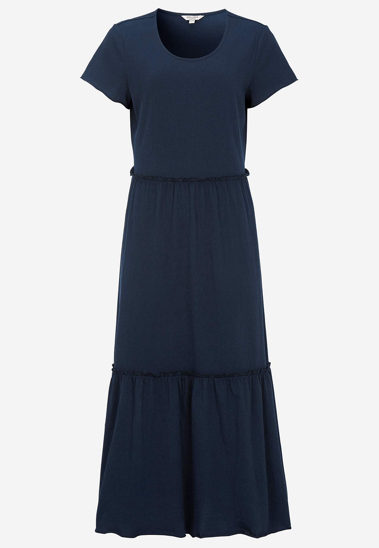 Elastyczna i miękka sukienka z falbankami z falistą strukturą. Swobodny i rozszerzany na dole fason. Część spódnicy z przyjemną szerokością. Wykończony overlockiem, falisty i cienki szew na spodzie, na krawędzi falbany i na mankietach. Zaokrąglona szyja. Krótkie kapturkowe rękawy. Lekko zaokrąglony brzeg. Długość pleców we ... Czytaj więcej