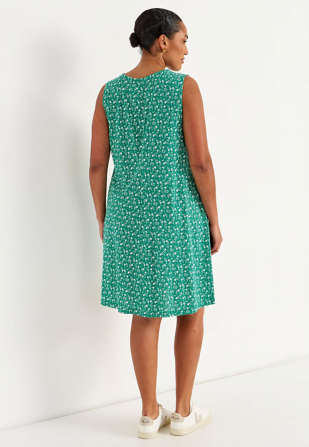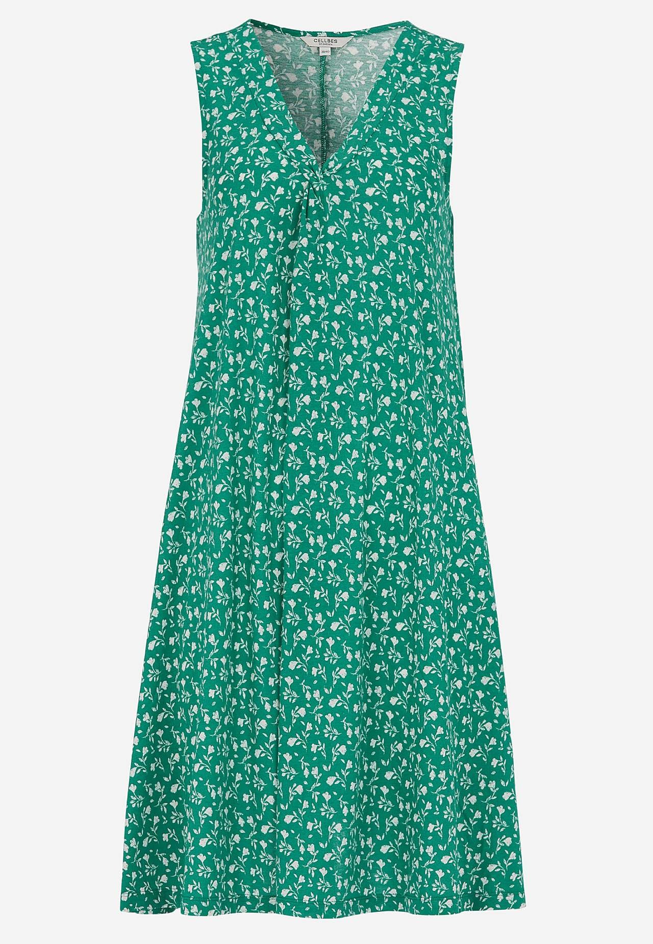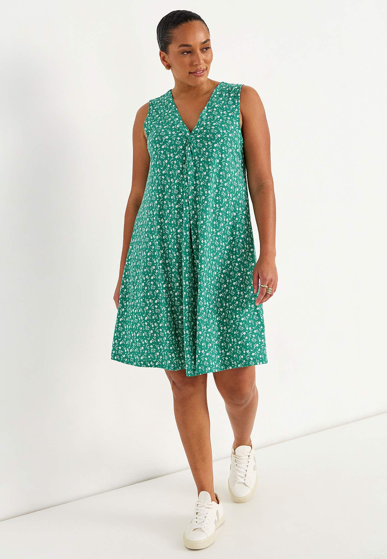 Dżersejowa sukienka bez rękawów. Przewiewny fason z przyjemnie miękkiej mieszanki bawełny i wiskozy. Przestronny i lekko wyprofilowany fason. Długość od ramion z tyłu w zależności od rozmiaru ok. 95-106 cm.