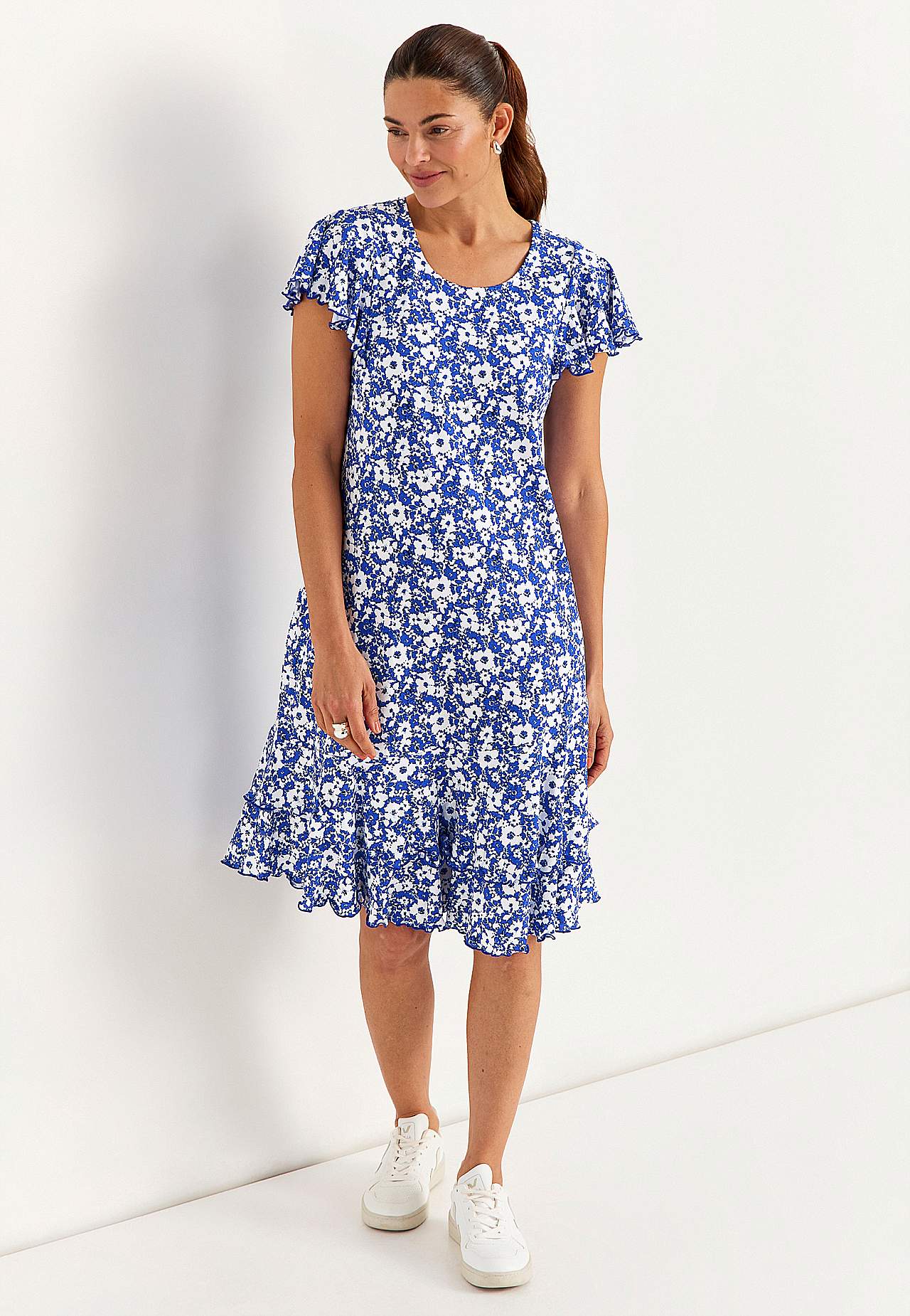 Dżersejowa sukienka z falbanami