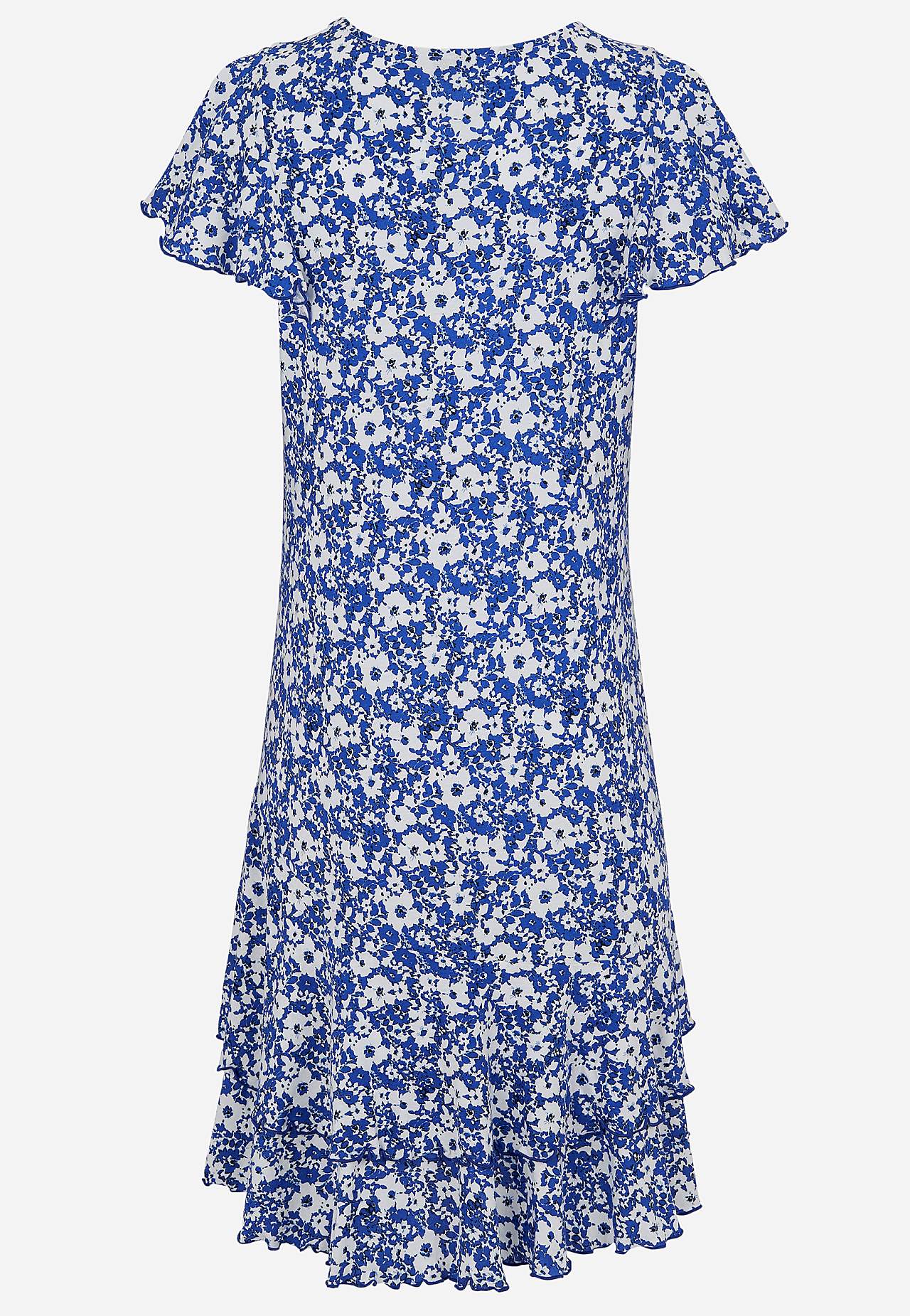 Sukienka z asymetrycznym szwem i podwójnymi falbanami na spodzie. Miękki dżersej z mieszanki bawełny i wiskozy. Dopasowany fason ze szerszym częścią spódnicy. Zaokrąglony dekolt. Krótkie rękawy motylki z wykończoną overlockiem, dekoracyjną i falistą krawędzią. Zaszewka piersiowa. Falbany na spodzie z wykończoną overlockiem ... Czytaj więcej