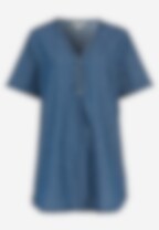 Tkana spódnica ze super miękkiego i nieco cieńszego dżinsu. Rugularny fason na stronie wierzchniej. Szerszy fason na spodzie. Talia z wygodną gumką z tyłu. Suwak i guzik. Ścieg ozdobny w środku, z przodu i z tyłu. Kieszenie po bokach. Prosty brzeg. Długość: 90 cm.