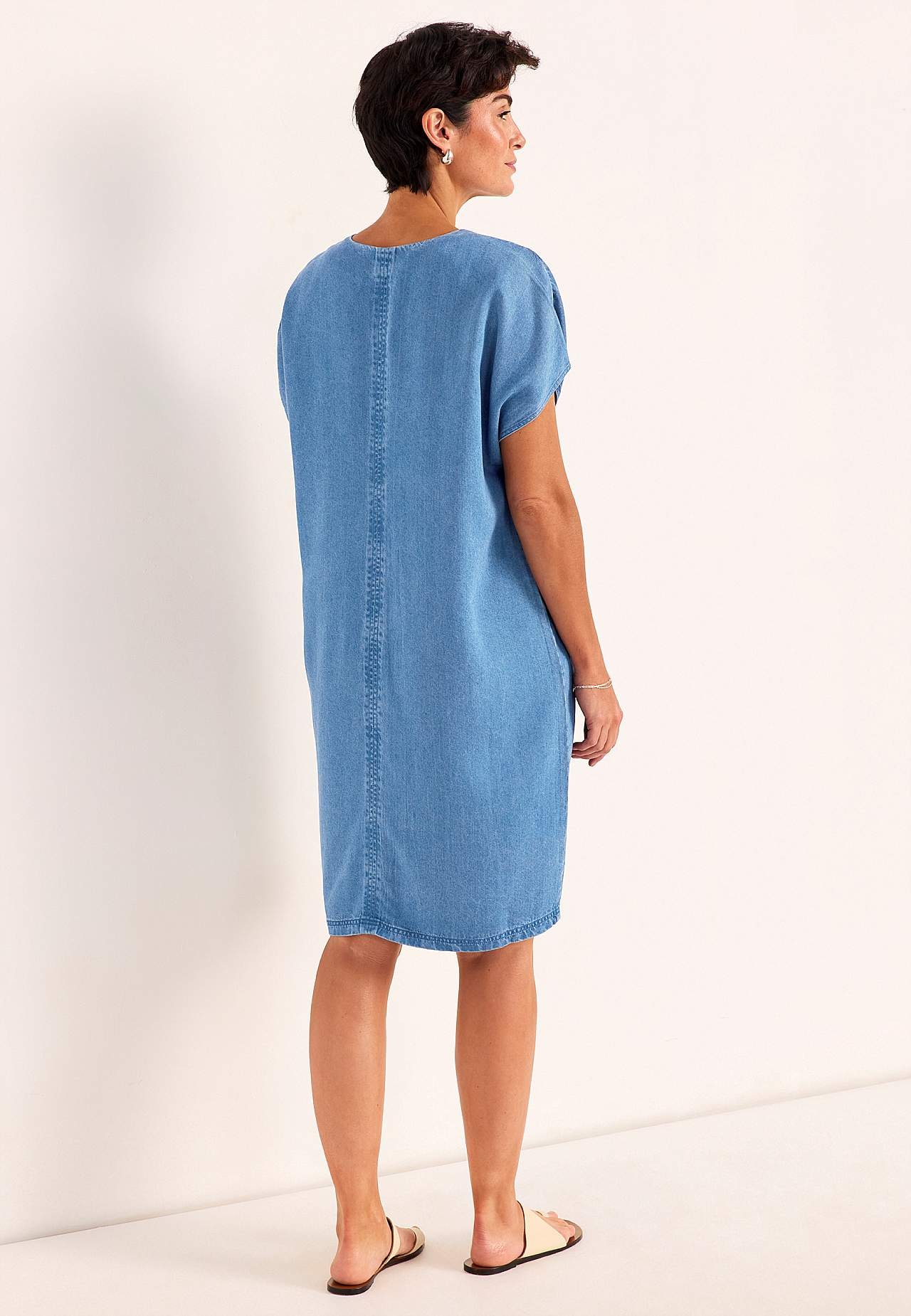 Sukienka z dżinsu z miękkim i niesamowicie wygodnym lyocellem. Stylowy i jednolity design. Gładki materiał z miłym drapowaniem. Prosty i luźny fason. Szyja z dekoltem w serek i ładne i środkowe ściegi detaliczne z przodu i z tyłu. Krótkie kapturkowe rękawy. Lekko zaokrąglony brzeg. Aby odzież odzyskała swoją miękkość, zale... Czytaj więcej