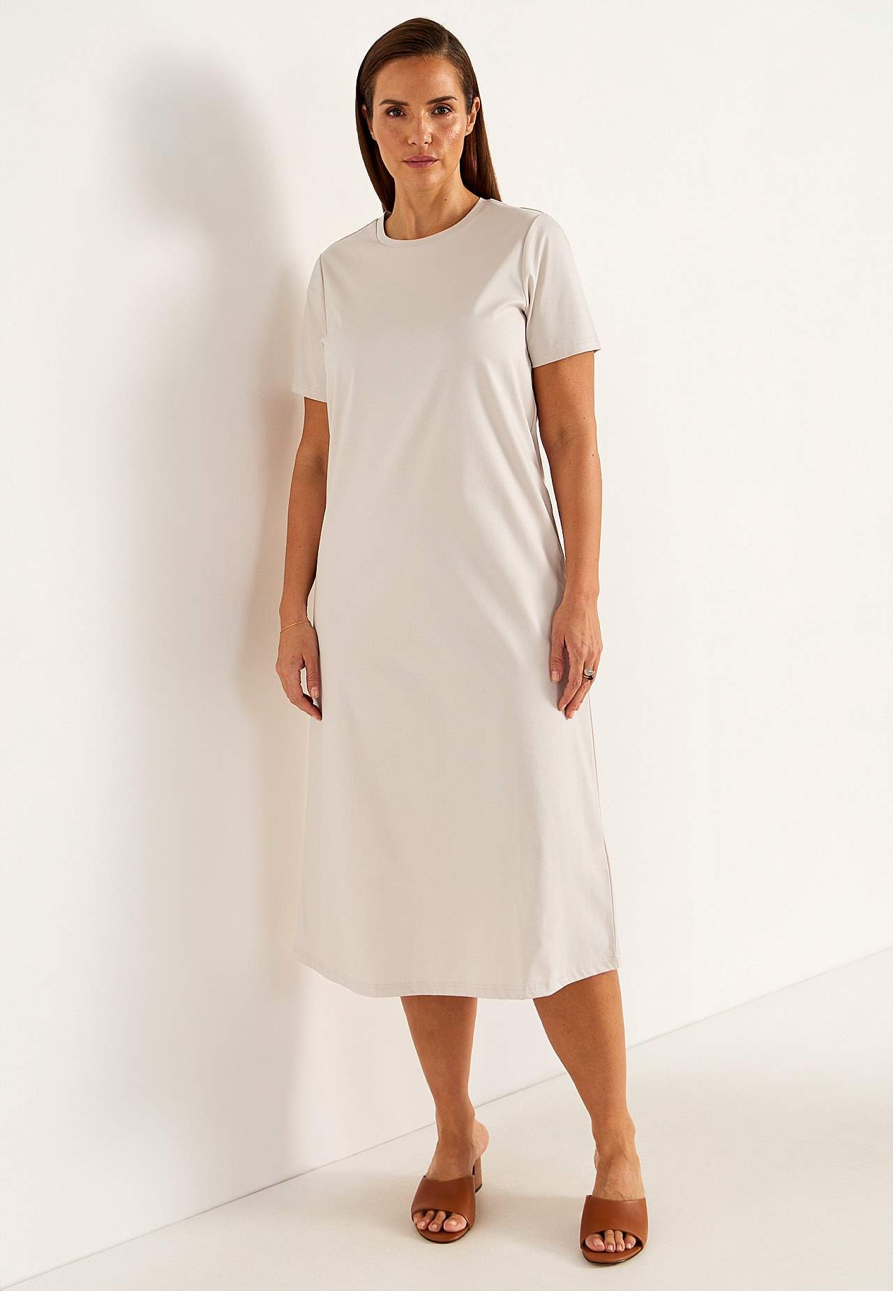 Stylowa sukienka T-shirtowa z wytrzymałej bawełny merceryzowanej. Bawełna merceryzowana została poddana specjalnej obróbce, która zwiększa jej połysk, trwałość i poprawia zdolność do wchłaniania kolorów. Dzięki tej obróbce odzież nie kurczy się i zachowuje swój kolor i kształt po każdym praniu. Przestronny fason. Ładna góra... Czytaj więcej
