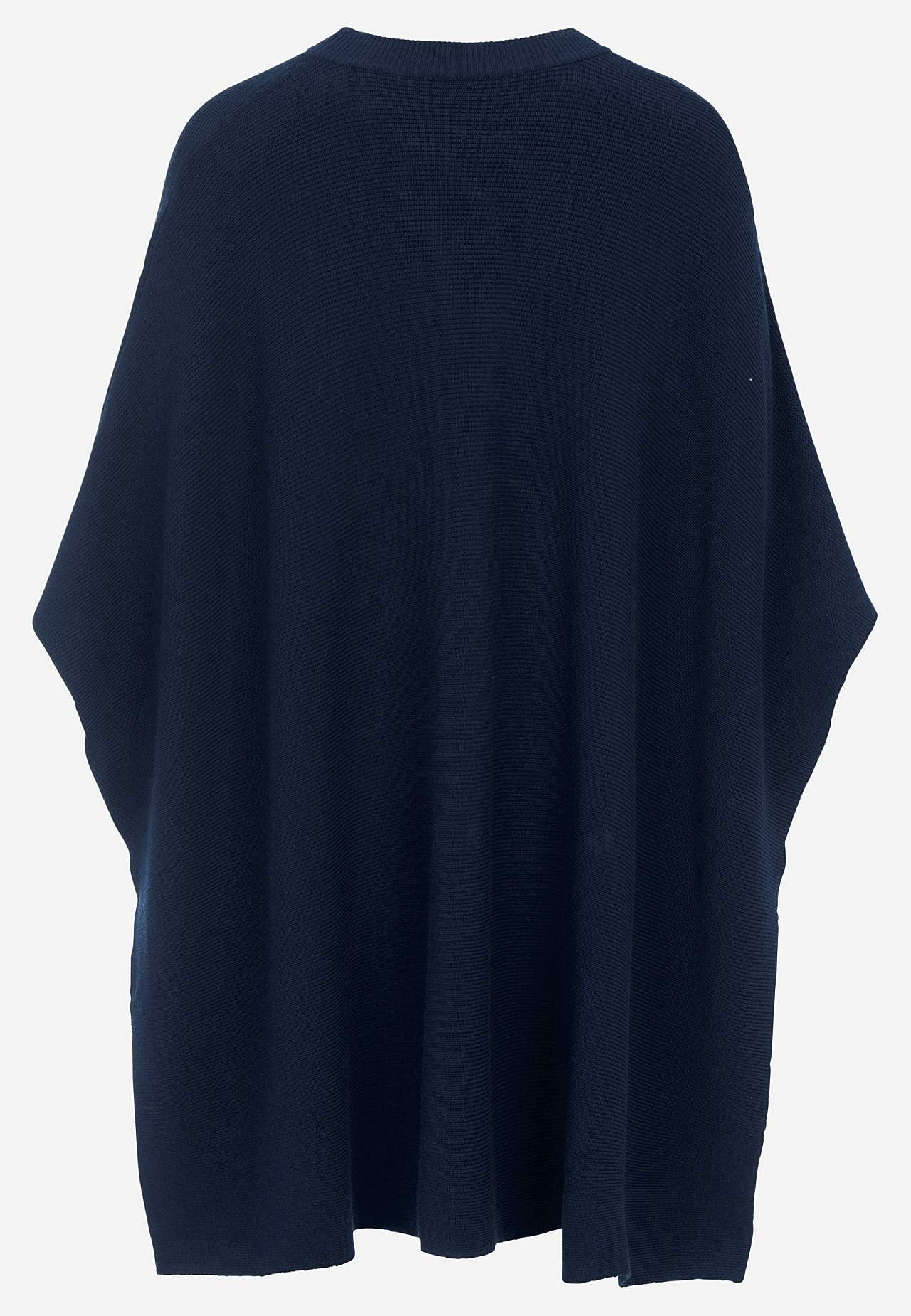 Ponczo prążkowane i cienko dziergany. Jakość z miękkiego mieszanki wiskozy. Nieco grubsza jakość z pięknym drapowaniem. Nieco dłuższy fason. Zaokrąglony i prążkowany dekolt. Uniwersalny rozmiar. Długość od ramienia ok. 90 cm w rozmiarze One-size.