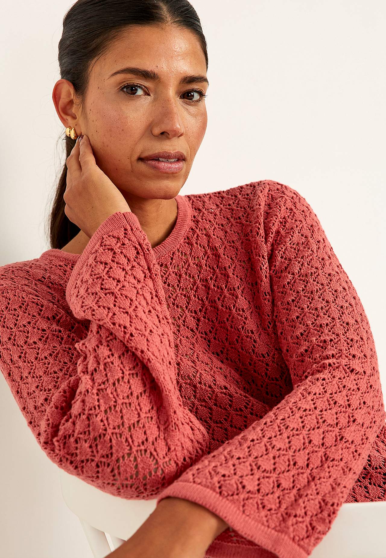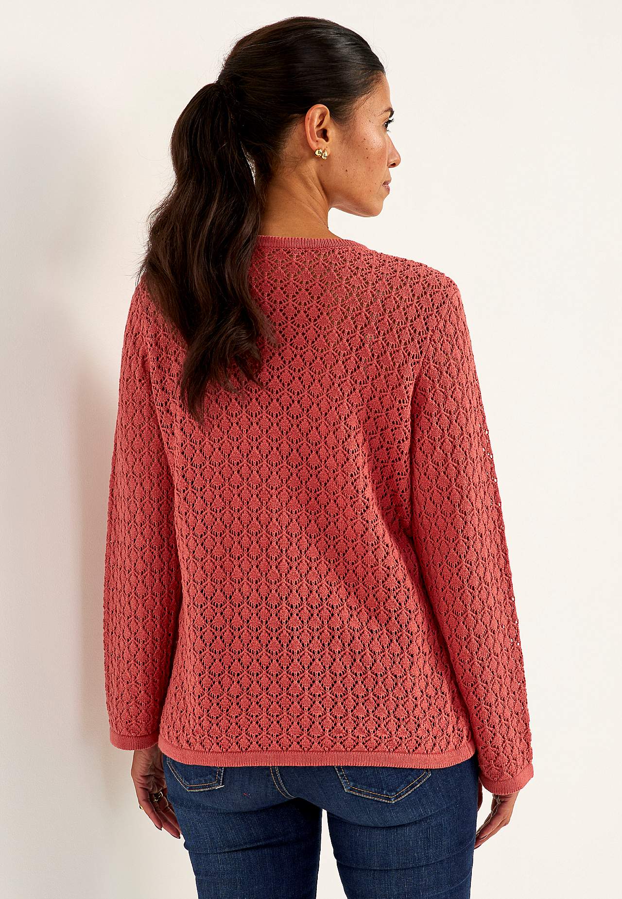 Dzianinowy sweter z ażurowym wzorem
