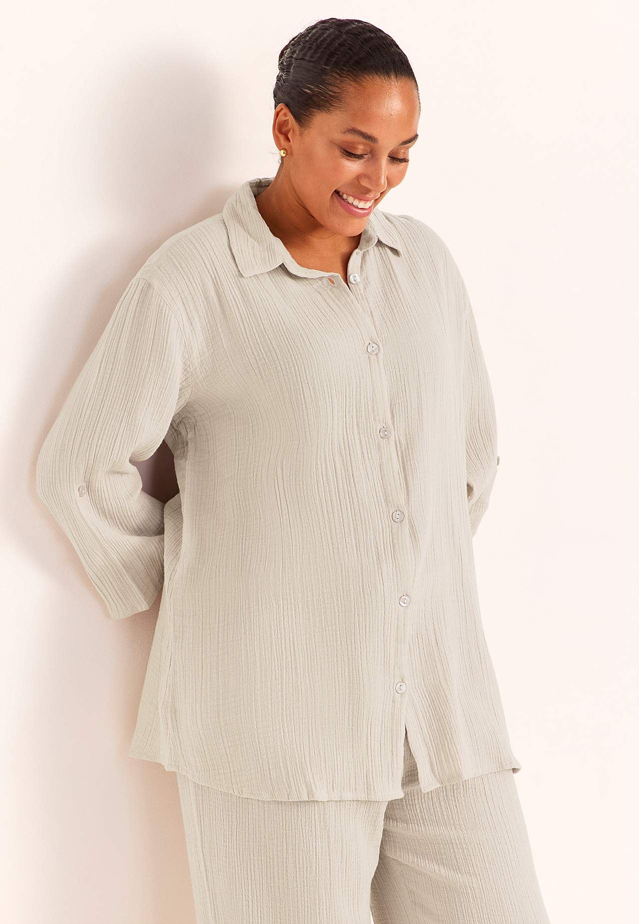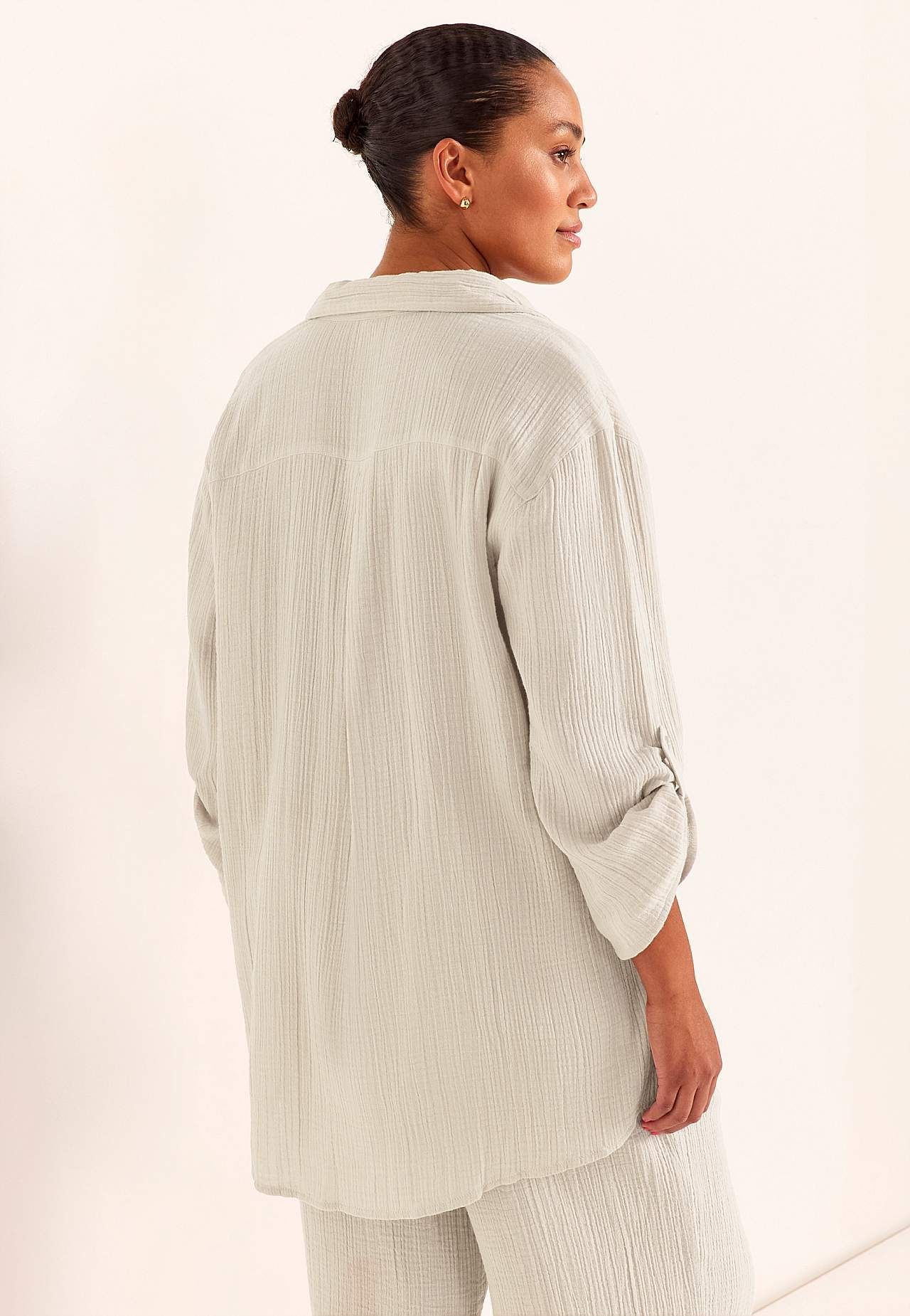 Koszula z przyjemnego i przewiewnego muślinu bawełnianego z naturalną strukturą. Fason z kołnierzem i guzikami. Luźny fason. Tradycyjny kołnierz. Opadające ramię. Zapięcie na guziki. Karczek i stylowa zakładka z tyłu. Rękaw 3/4 z guzikiem z paskiem. Zaokrąglony brzeg nieco dłuższy z tyłu. Długość od ramion w zależności od ... Czytaj więcej