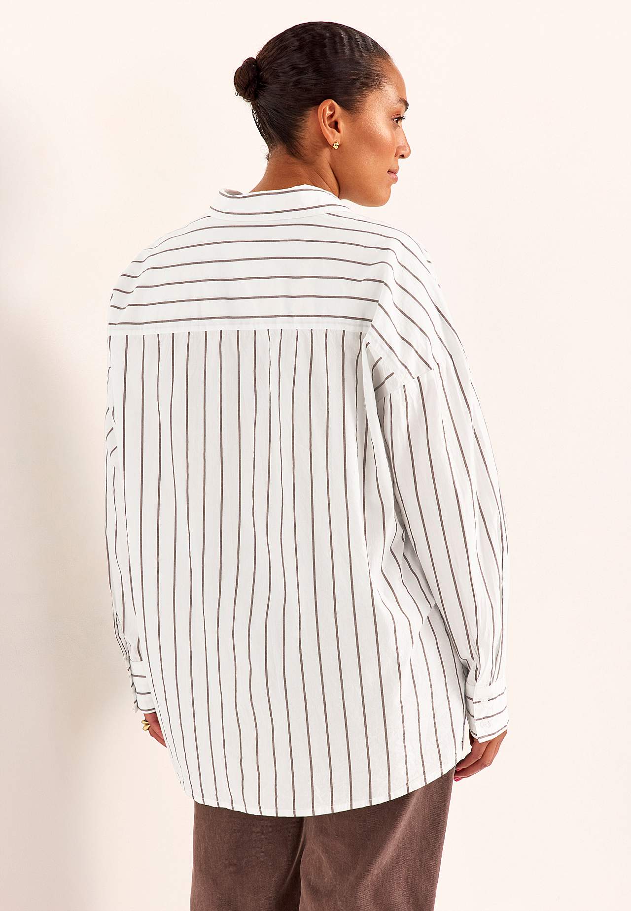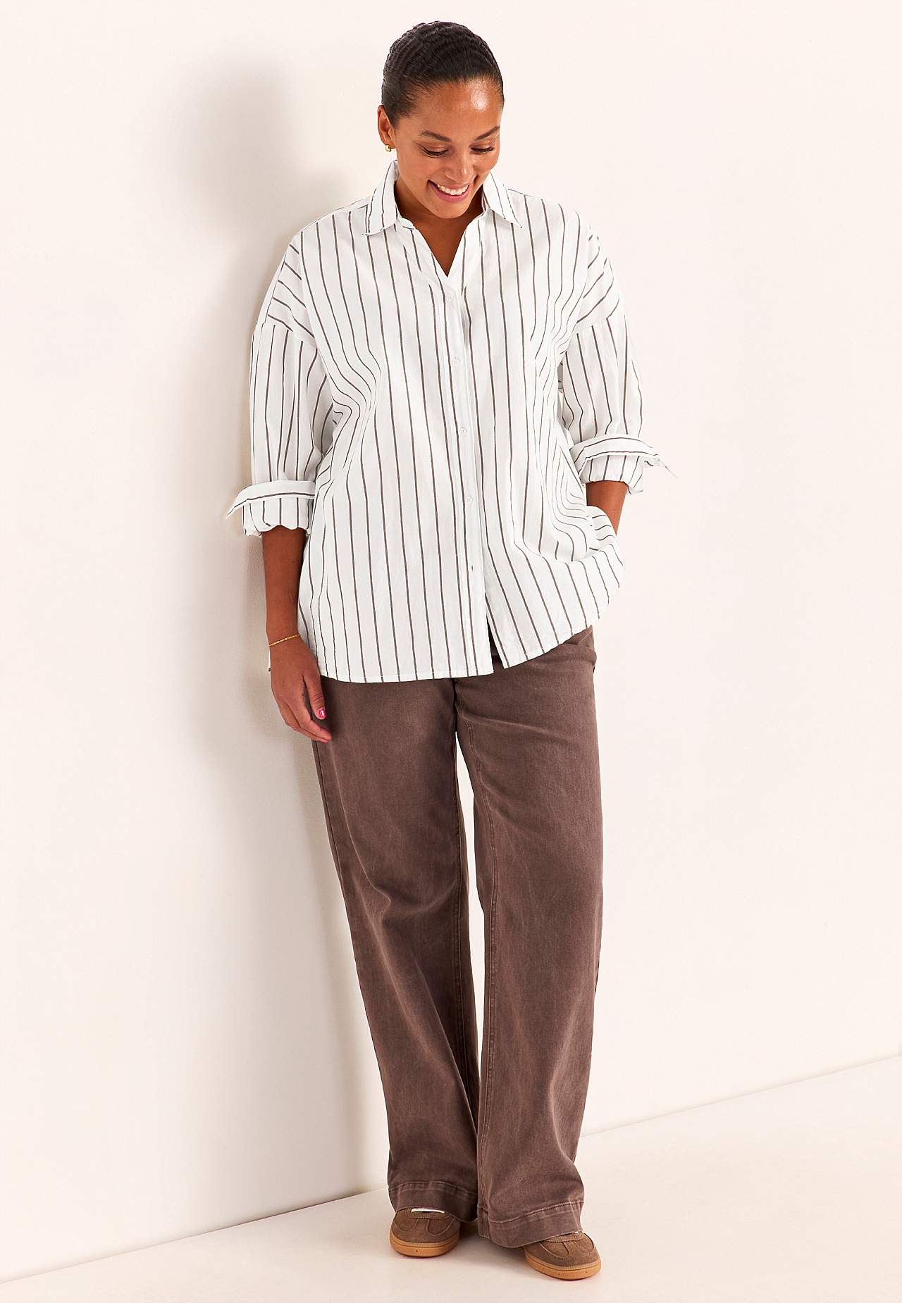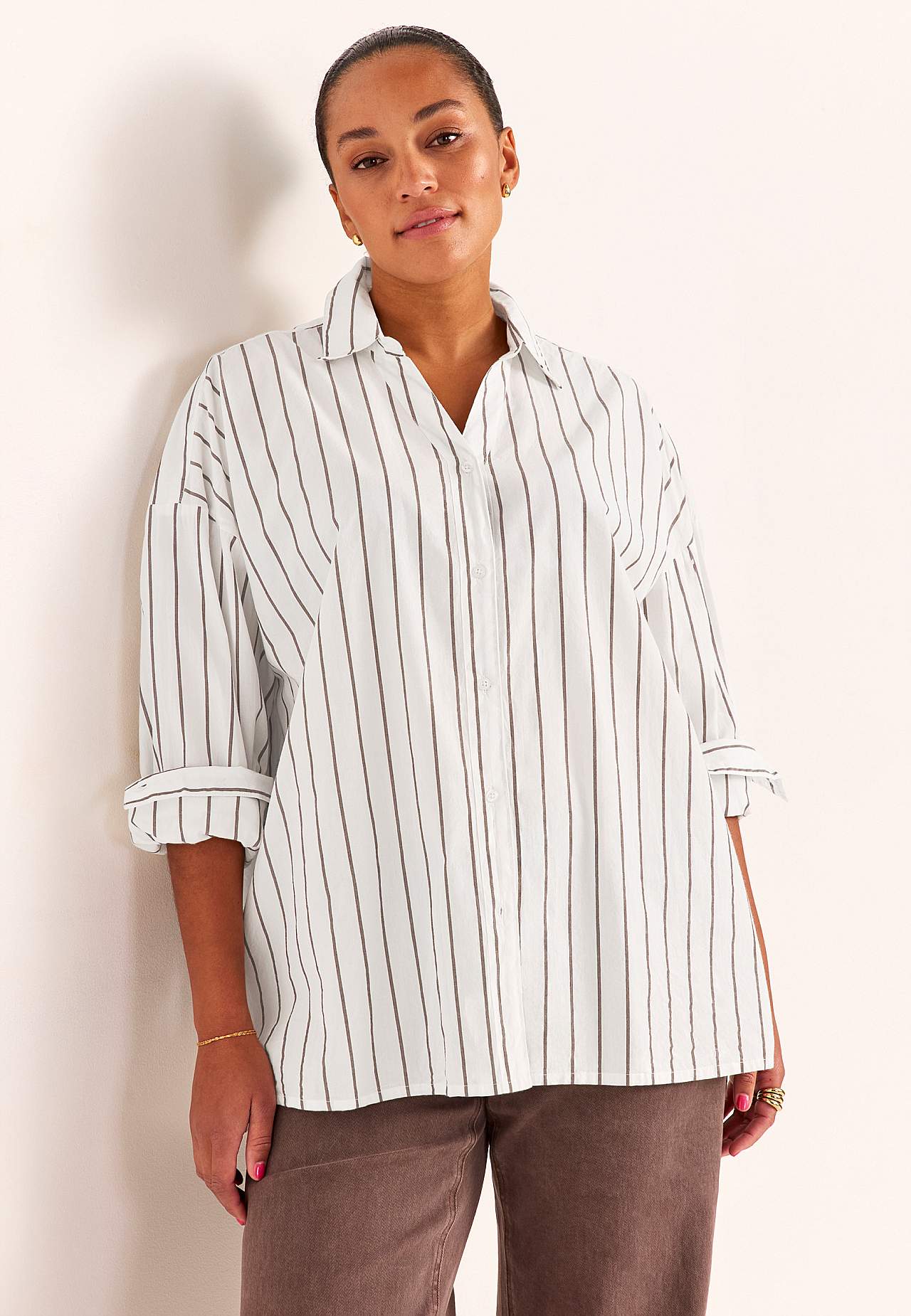 Dłuższa koszula z klasycznym kołnierzem i farbowaną i elegancką naszywką. Tkany i miękki materiał z wyprasowanym uczuciem. Luźny i swobodny fason. Klasyczny kołnierz i stający dekolt w kształcie litery v. Opadające ramię. Fason zapinany na guziki. Karczek z tyłu. Długie rękawy z mankietem i guzikami. Zaokrąglony brzeg niec... Czytaj więcej