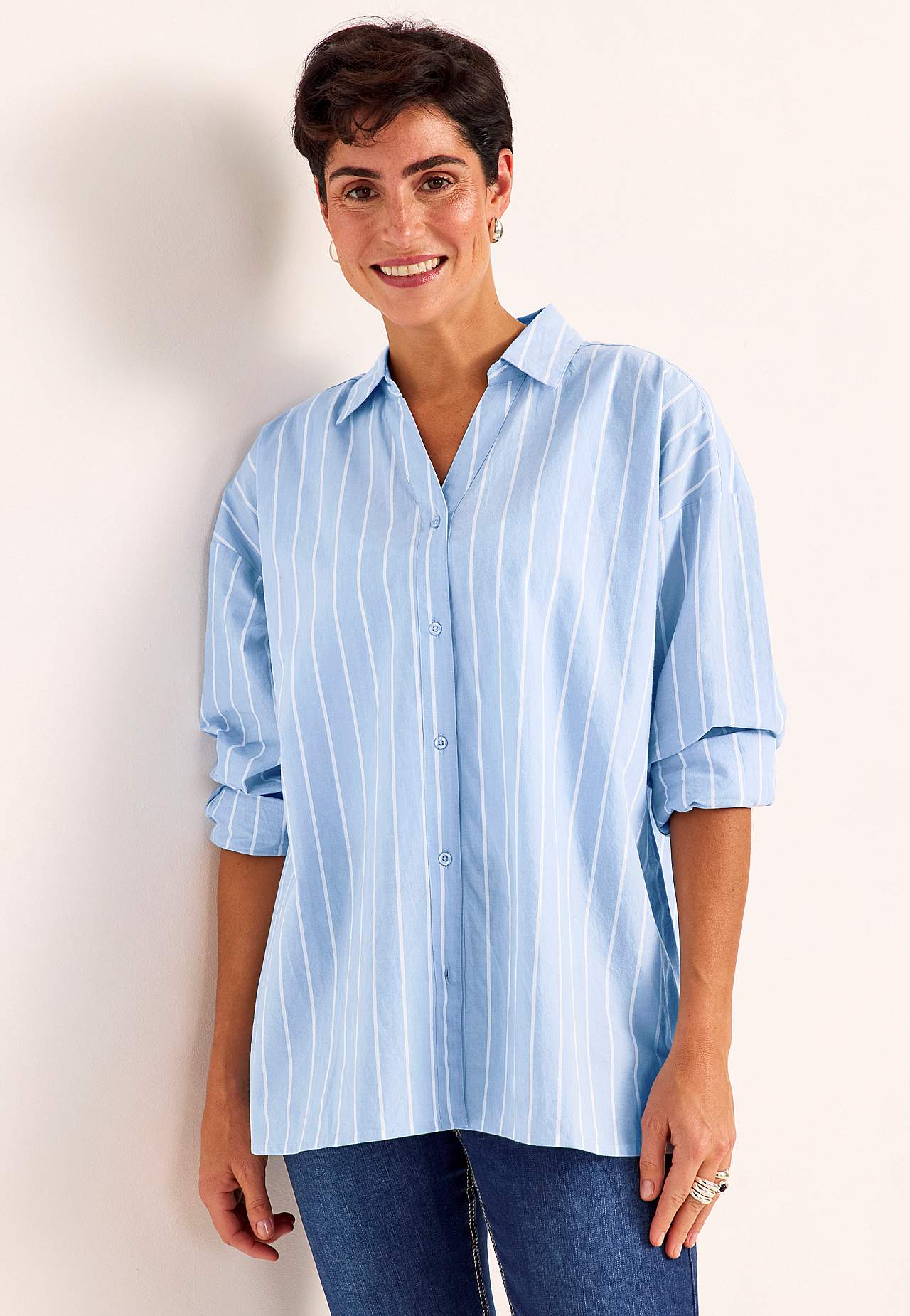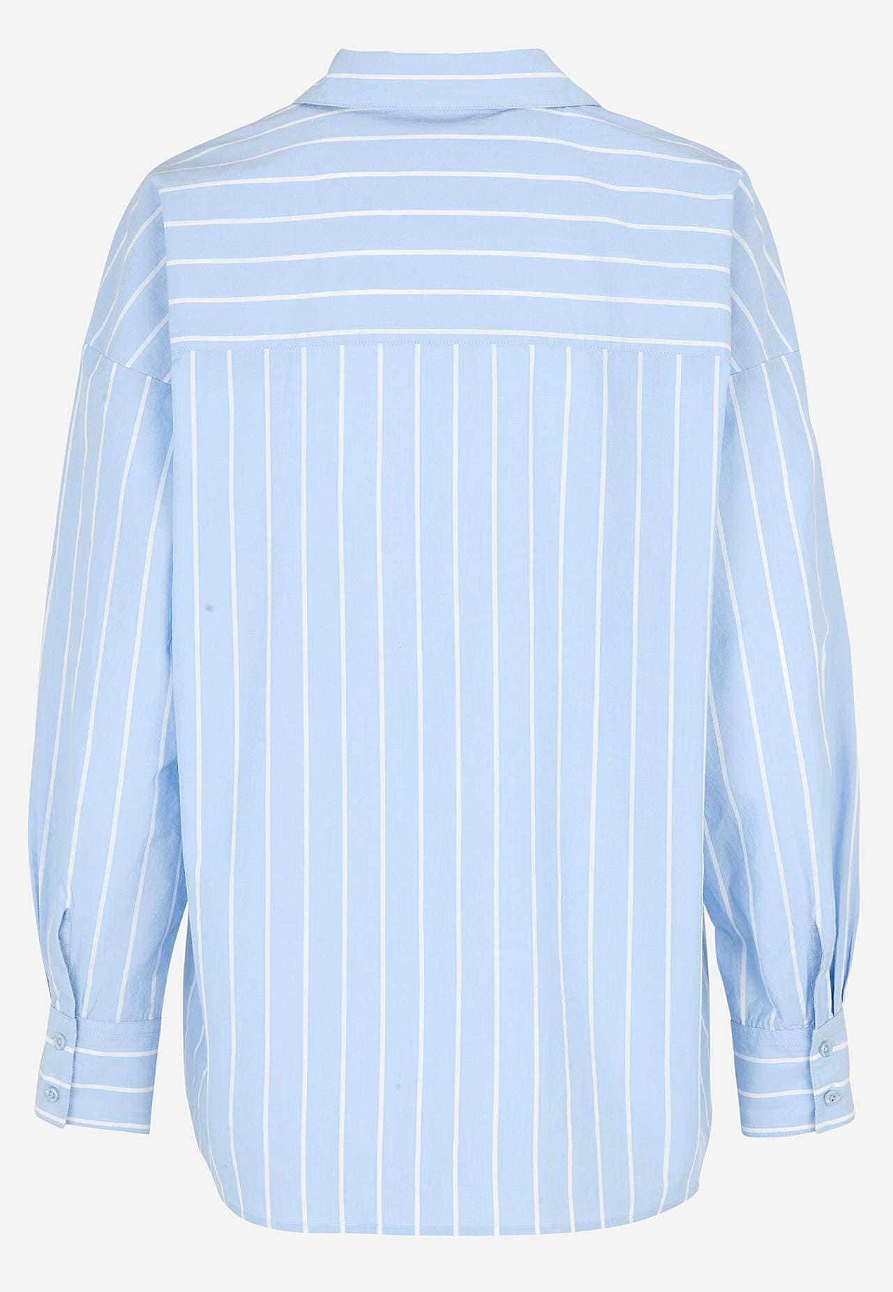 Dłuższa koszula z klasycznym kołnierzem i farbowaną i elegancką naszywką. Tkany i miękki materiał z wyprasowanym uczuciem. Luźny i swobodny fason. Klasyczny kołnierz i stający dekolt w kształcie litery v. Opadające ramię. Fason zapinany na guziki. Karczek z tyłu. Długie rękawy z mankietem i guzikami. Zaokrąglony brzeg niec... Czytaj więcej