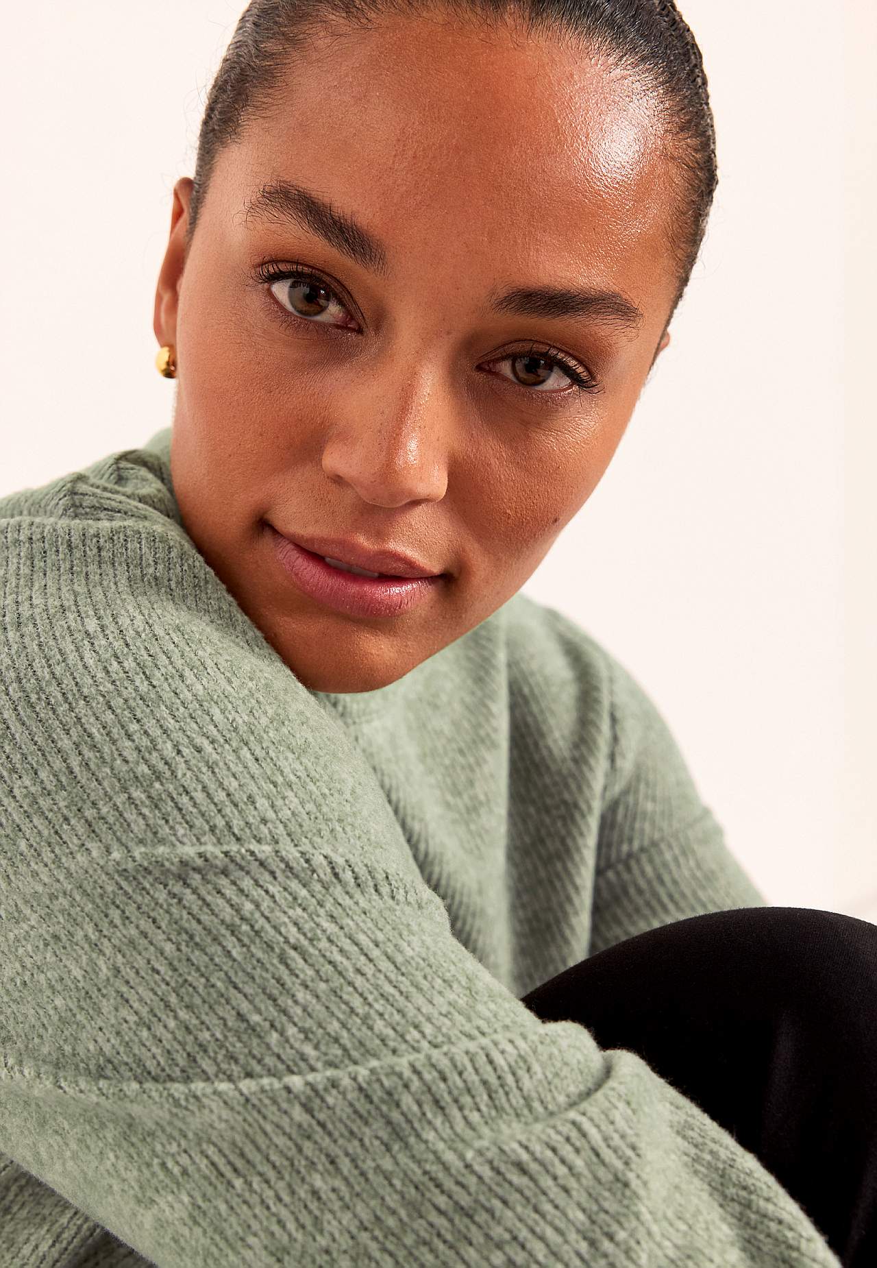 Modelka ma 177 cm wzrostu i nosi rozmiar 46/48
