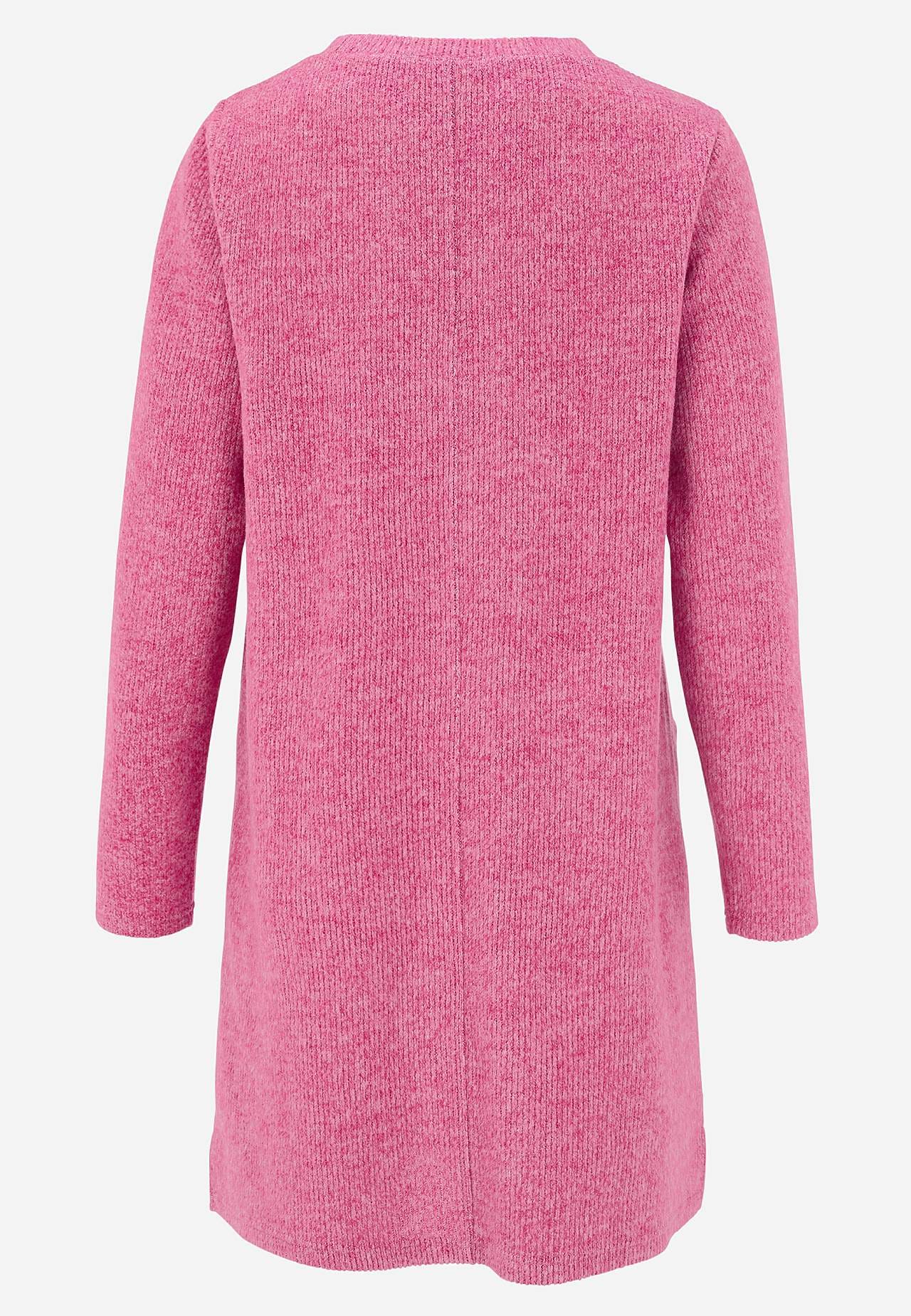 Miękka tunika z środkowym szwem z przodu i z tyłu. Elastyczny i prążkowany materiał ze szczotkowaną powierzchnią. Rugularny fason. Zaokrąglona szyja. Długie i proste rękawy. Dekoracyjny szew z przodu. Kryte kieszenie z przodu. Prosty brzeg z rozcięciem po bokach. Długość od ramion w zależności od rozmiaru ok. 87-94 cm cm.